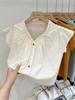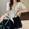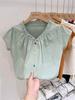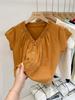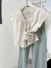 Camisa de manga corta para mujer, verano 2024, nueva ropa de mujer, moda de nicho francesa, elegante, cuello en V, ligera, madura, elegante, top