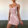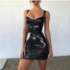 Vestido de tirantes de cuero de PU, sexy, para discoteca, discoteca, celebridad, diosa, brillante, cruzado, con correa en el pecho, adelgazante de cintura