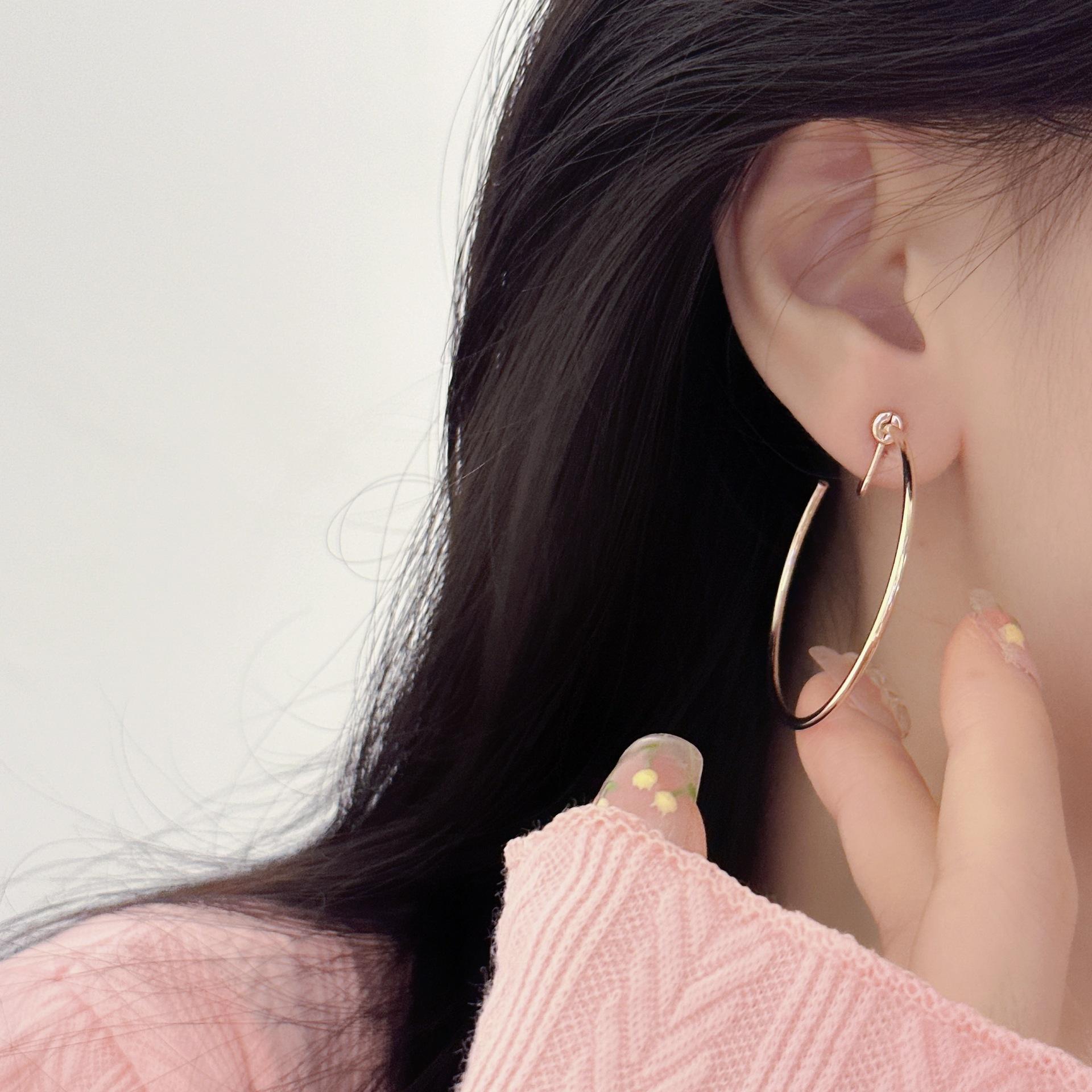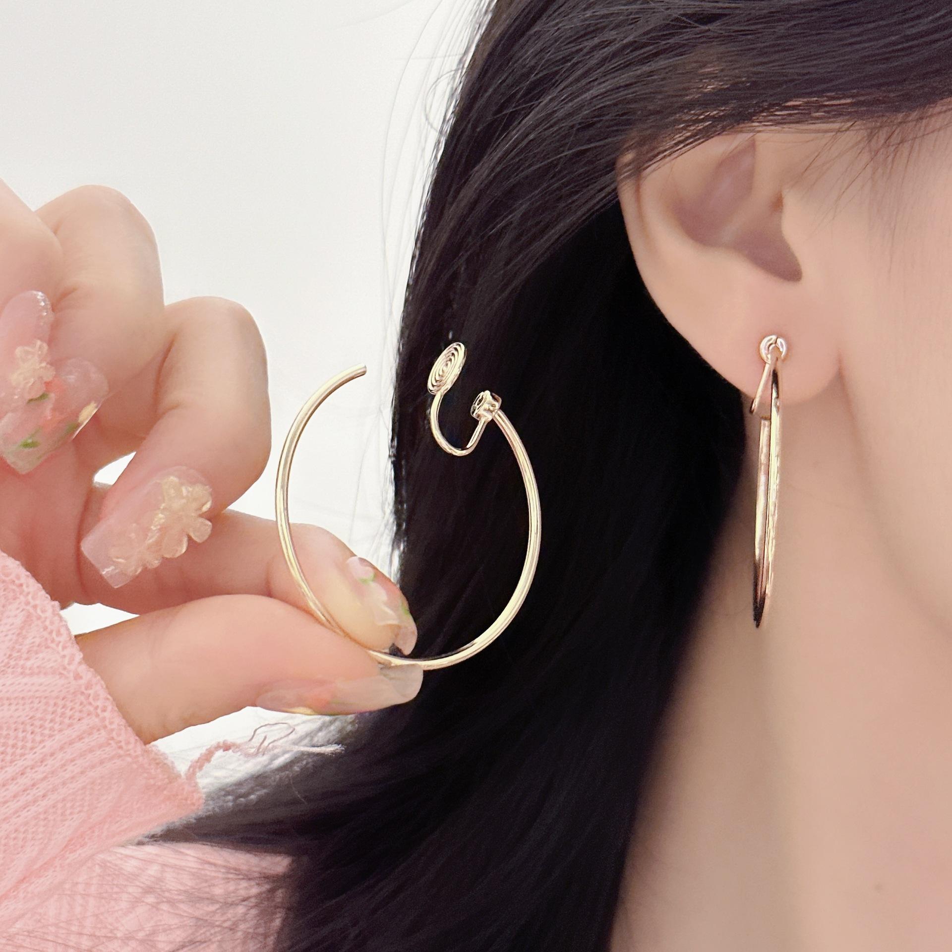 Pendientes grandes minimalistas dorados de moda europea y americana, pendientes de moda de alta calidad sin perforaciones, clip para la oreja con espiral de mosquitos para mujer