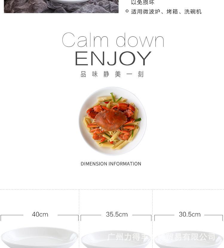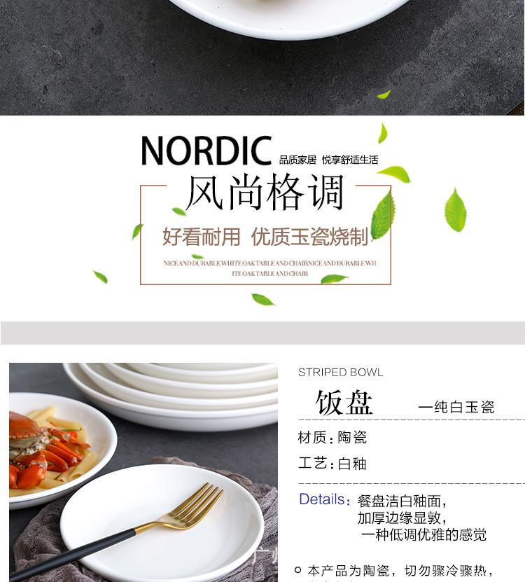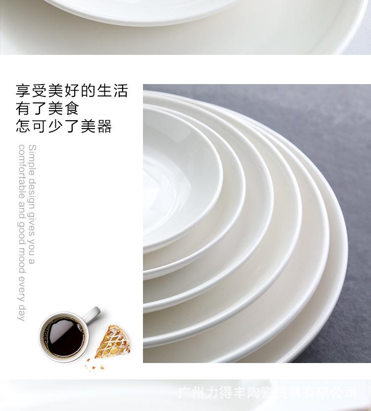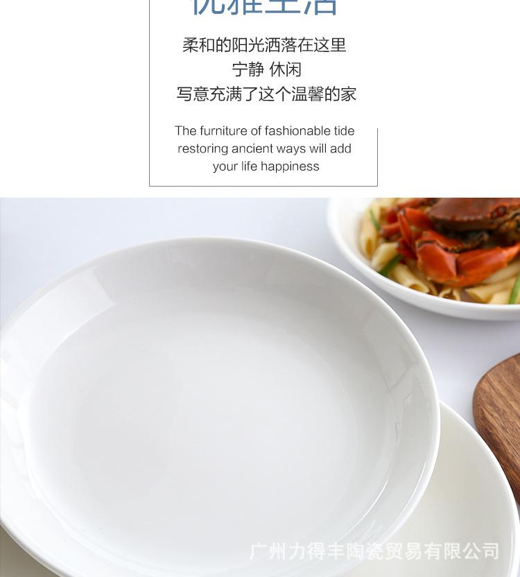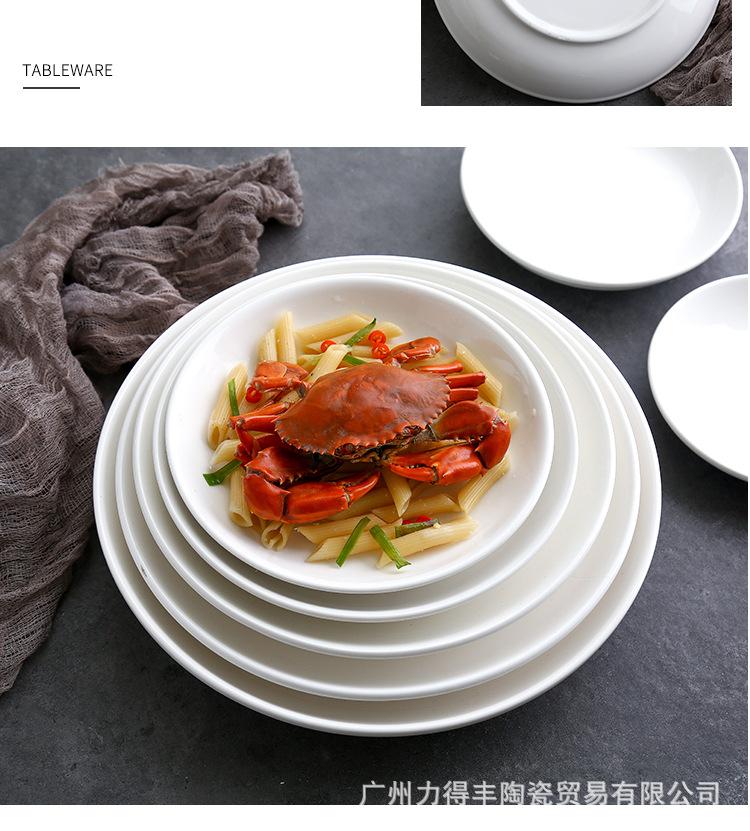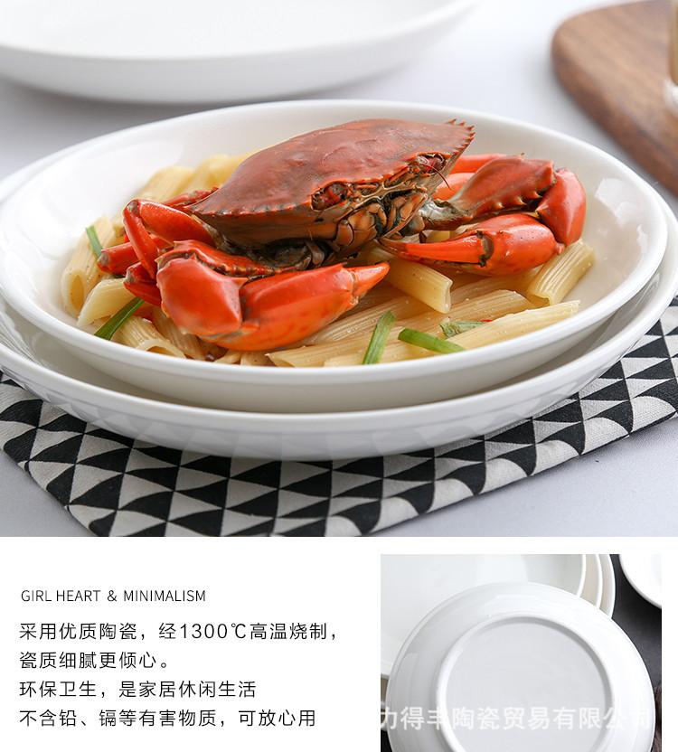 Plato de cerámica blanca pura para el hogar, plato redondo de porcelana blanca, plato hondo de 10 pulgadas, plato de arroz, plato de sopa, vajilla