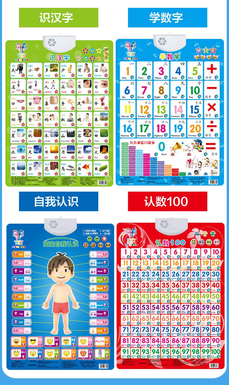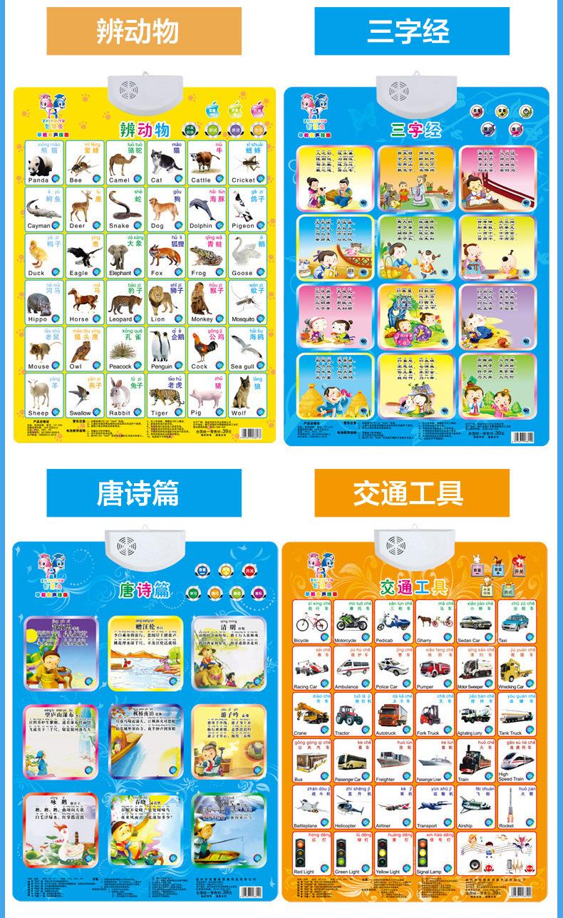 Este conjuntoTabla de pared de audio15pago: Autoconocimiento,Reconocer caracteres chinos, inglés nuevo, poemas de la dinastía Tang, Clásico de los Tres Caracteres, reconocer números del 1 al 100, aprender pinyin, aprender matemáticas, animales, nombres de personas, necesidades diarias, medios de transporte, frutas y verduras, formas y colores, 100 números completos.Si compra 100 o más piezas (una pieza) a la vez, el precio es de 5.1 yuanes por pieza. ¡Por favor, contacte con el servicio de atención al cliente para cambiar el precio después de realizar el pedido!