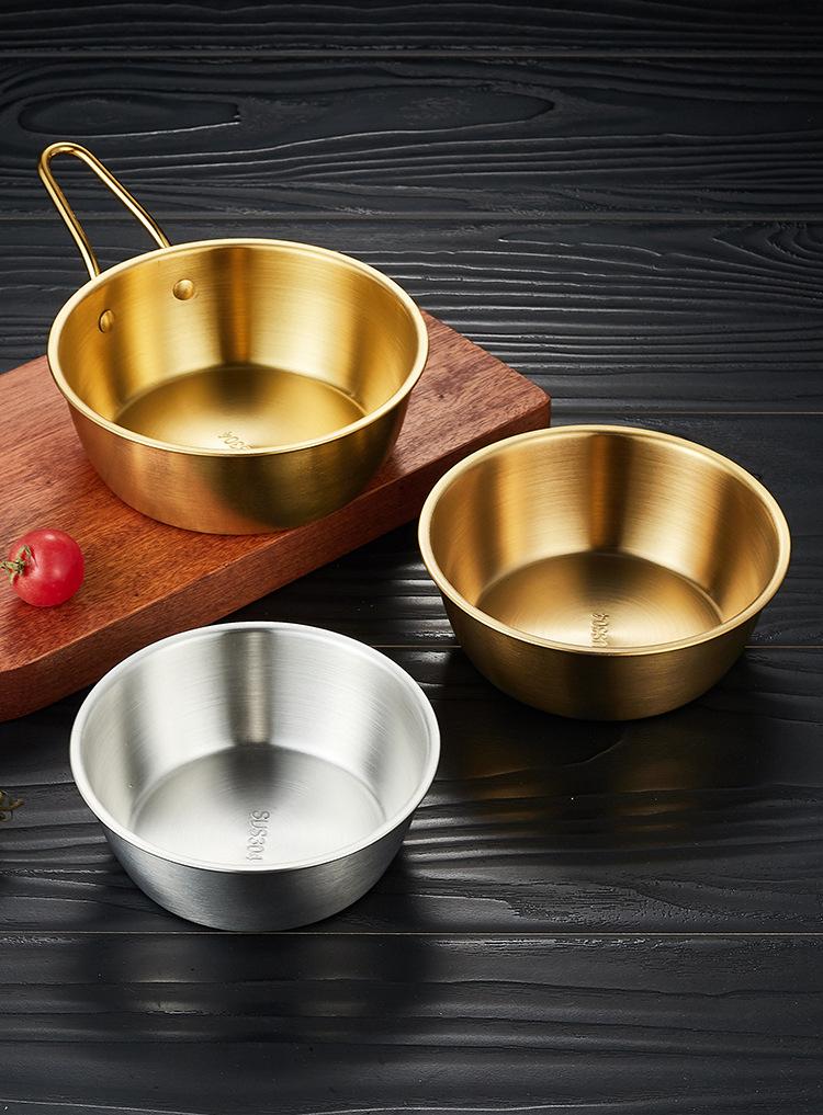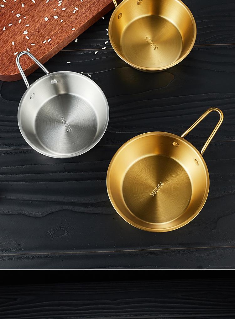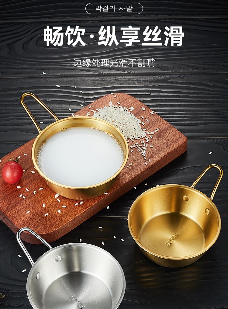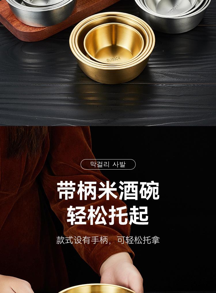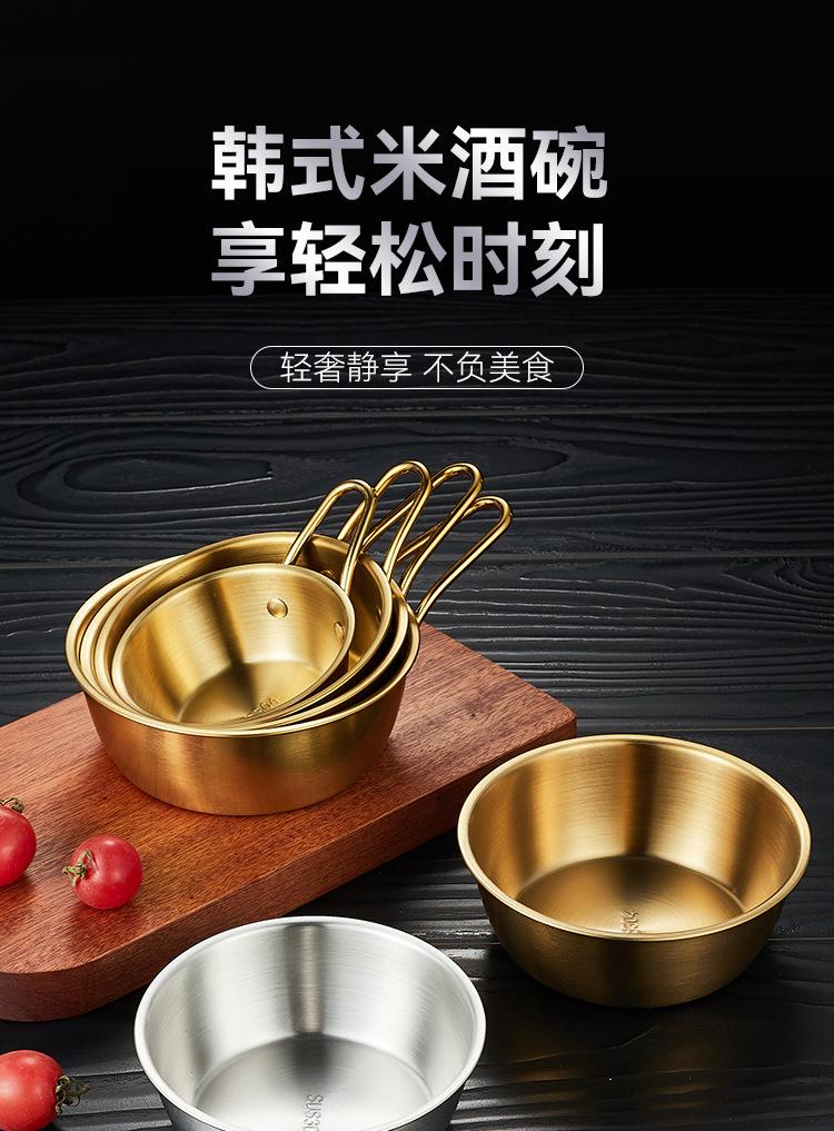 Tazón coreano de acero inoxidable 304 para vino de arroz dorado con asa, tazón para bocadillos, tazón especial para tienda de cocina para arroz, tazón para preparar condimentos