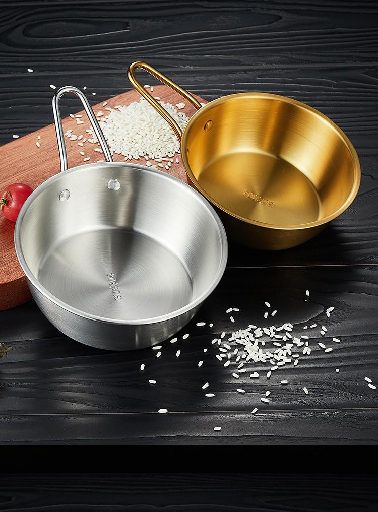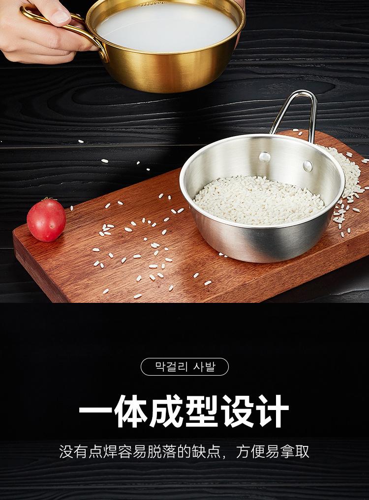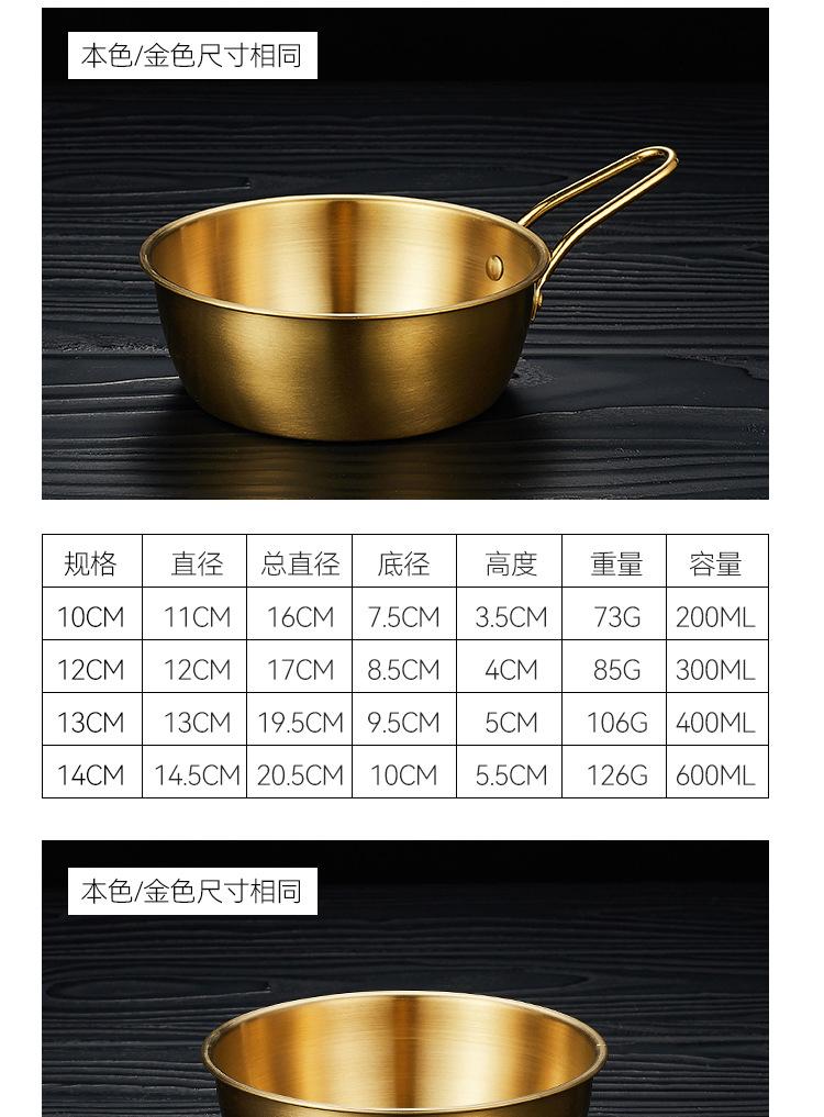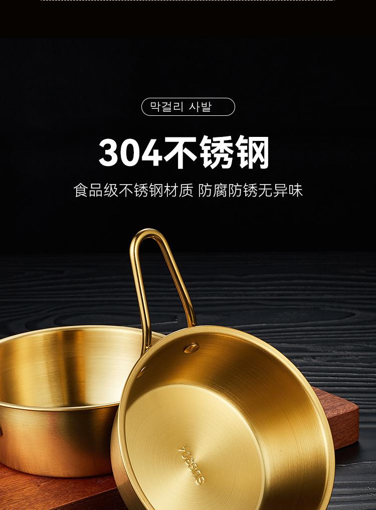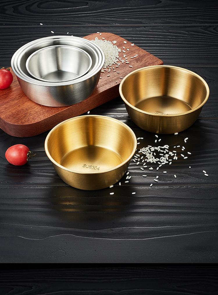 Tazón coreano de acero inoxidable 304 para vino de arroz dorado con asa, tazón para bocadillos, tazón especial para tienda de cocina para arroz, tazón para preparar condimentos