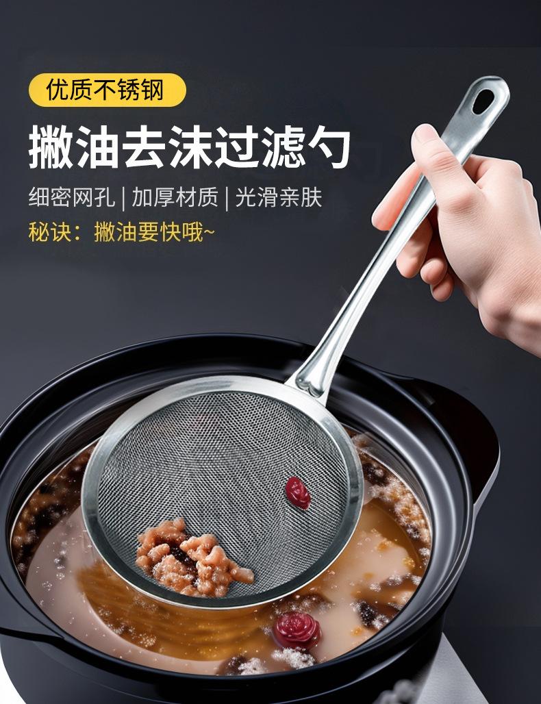 Cuchara Coladora de Cocina de Acero Inoxidable Red para Escurrir Aceite Colador para Leche de Soya Jugo Cuchara Espumadera Cuchara para Escurrir Aceite de Olla Caliente