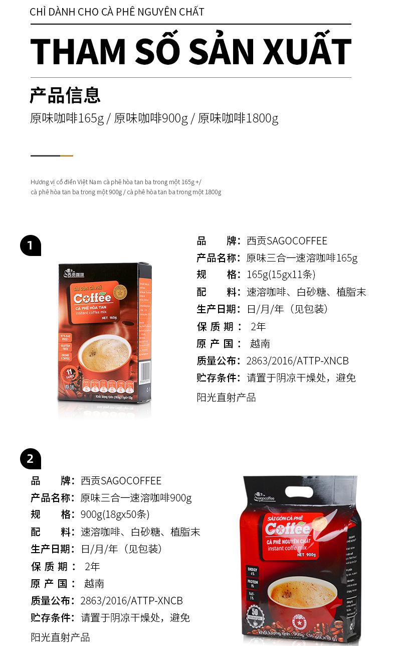 Café de Vietnam importado, bolsa de café en polvo de Saigón, café instantáneo tres en uno, 900 g, sabor original, 50 piezas