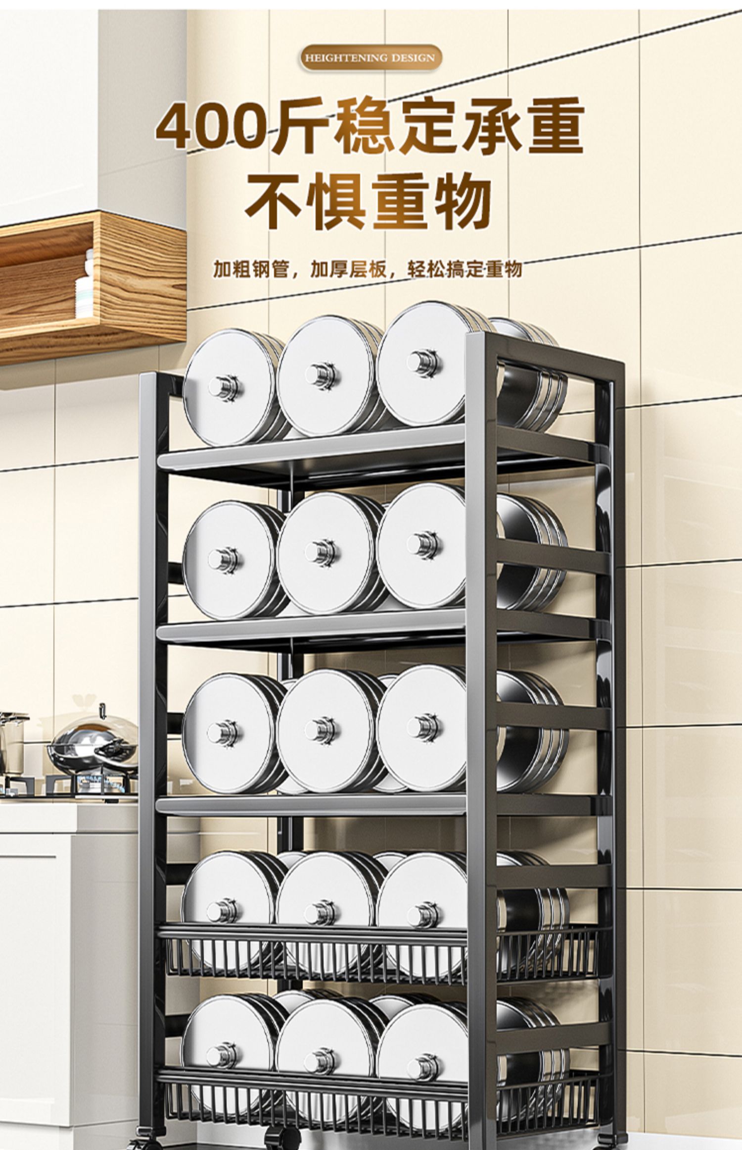 5 layers of black-simple carbon steel easy storage