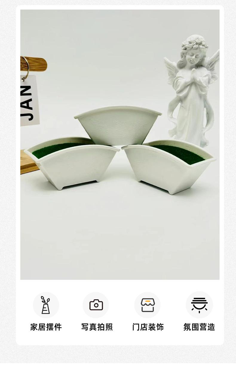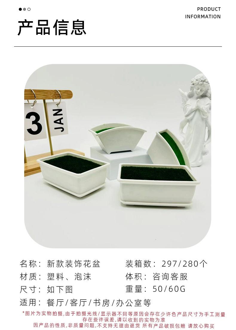 Maceta pequeña rectangular en forma de abanico con simulación de maceta de espuma, maceta de plástico, adornos decorativos de escritorio, venta al por mayor de fabricantes de flores