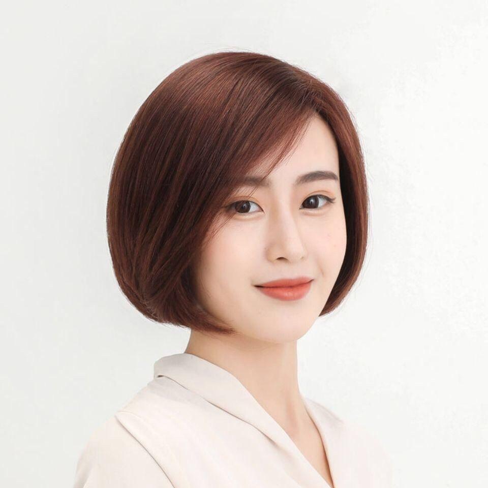 Peluca Mujer Bobo Set Cabeza Completa Realista Raya Lateral Cabello Largo Cara Redonda Estudiante Celebridad de Internet Hebilla Hacia Adentro Cabello Clavícula Set Cabello Completo Superior