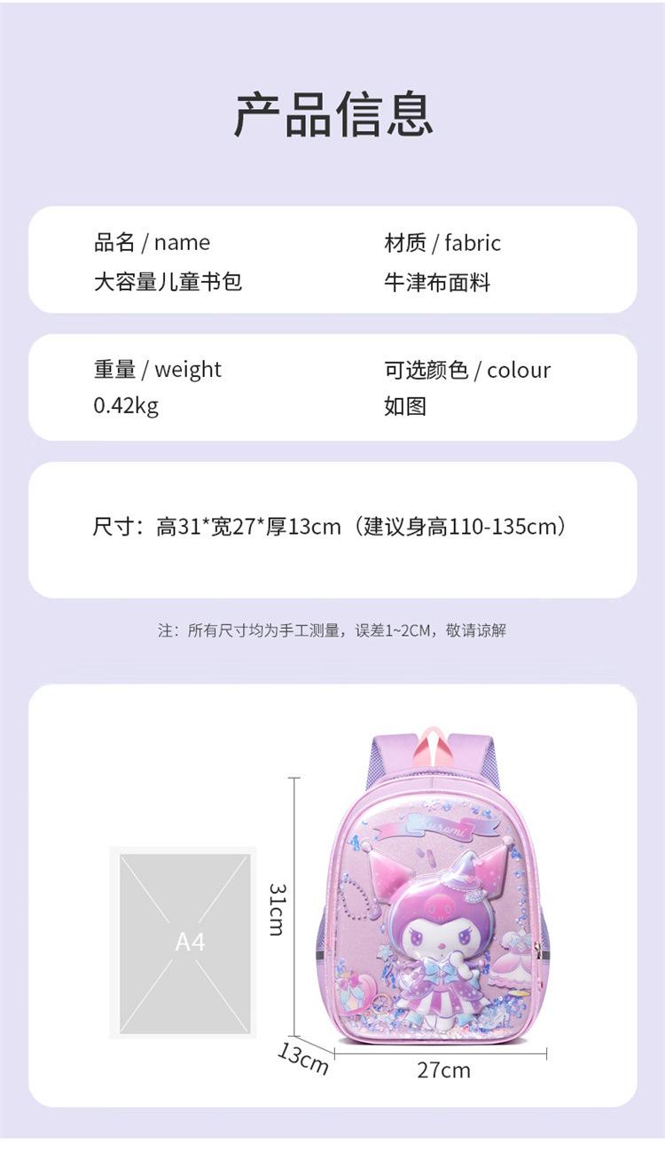 Mochila Escolar Pequeña Nueva para Niñas de Jardín de Niños Moda Arena Movediza Mochila para Niños Kulomi Lindo Bolso de Dibujos Animados Transfronterizo