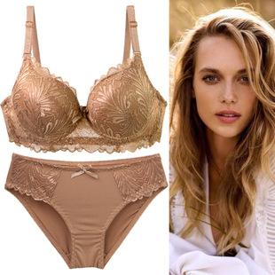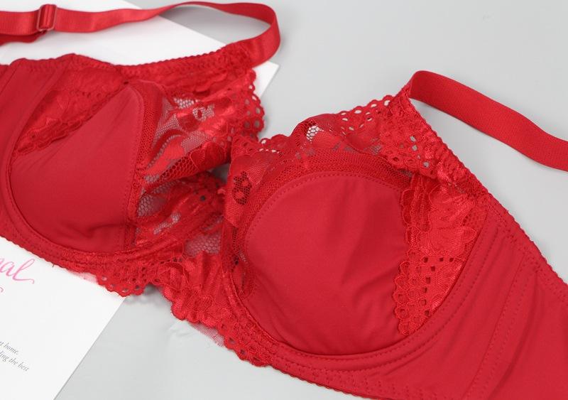 Sujetador de talla grande europeo y americano de encaje push up con aro de acero ropa interior transfronteriza ajustable para busto grande y pecho pequeño