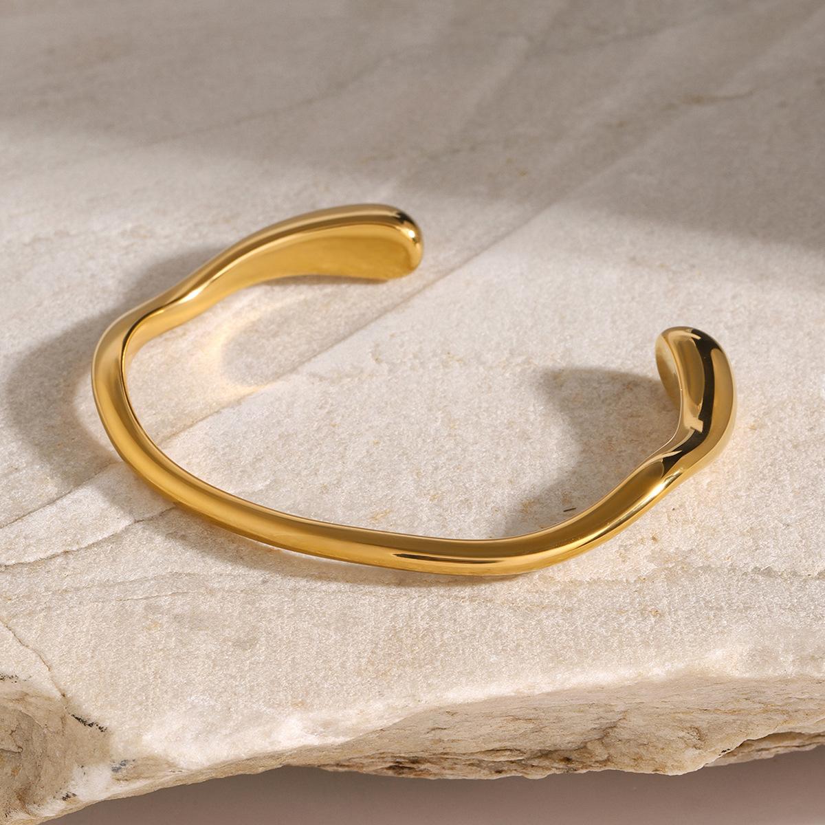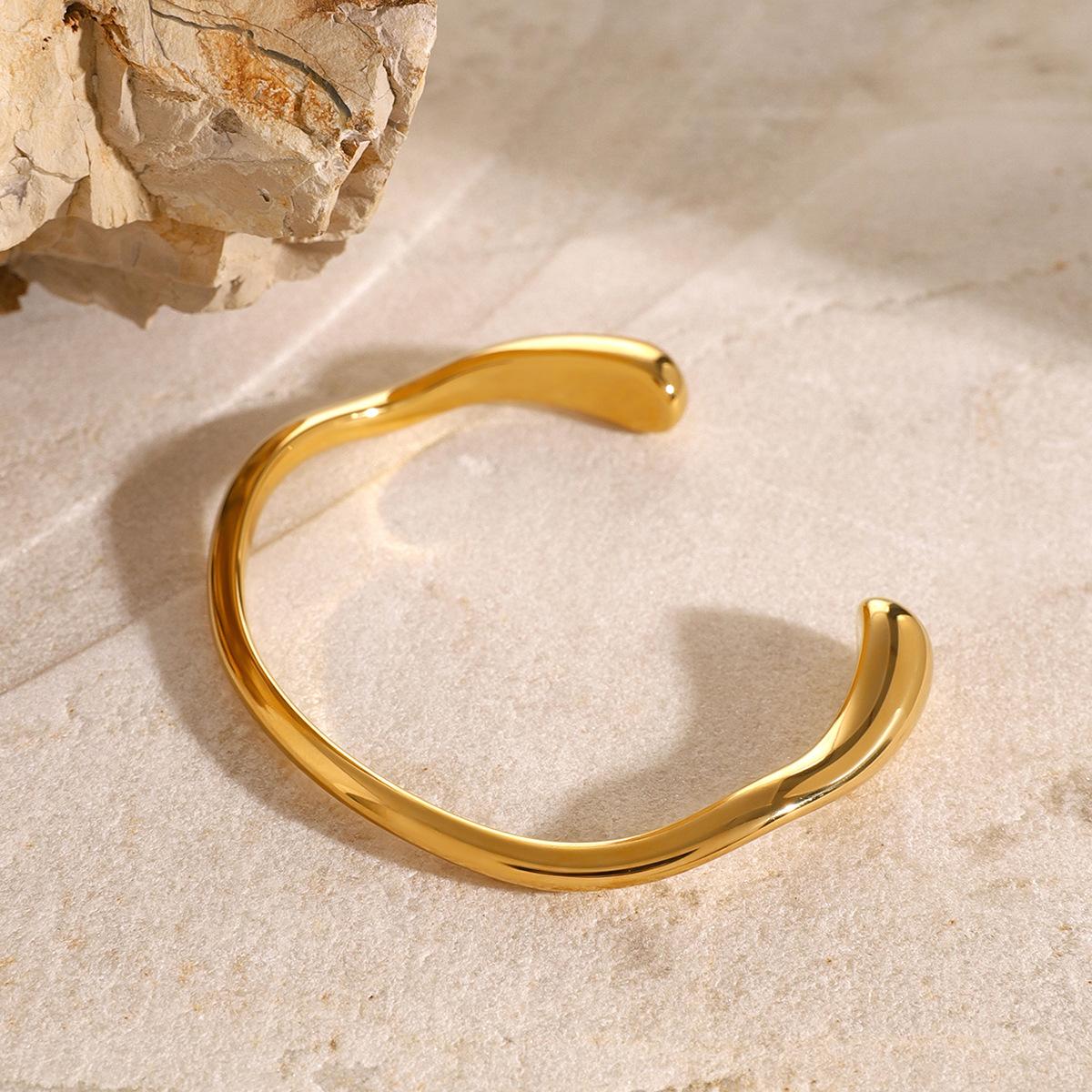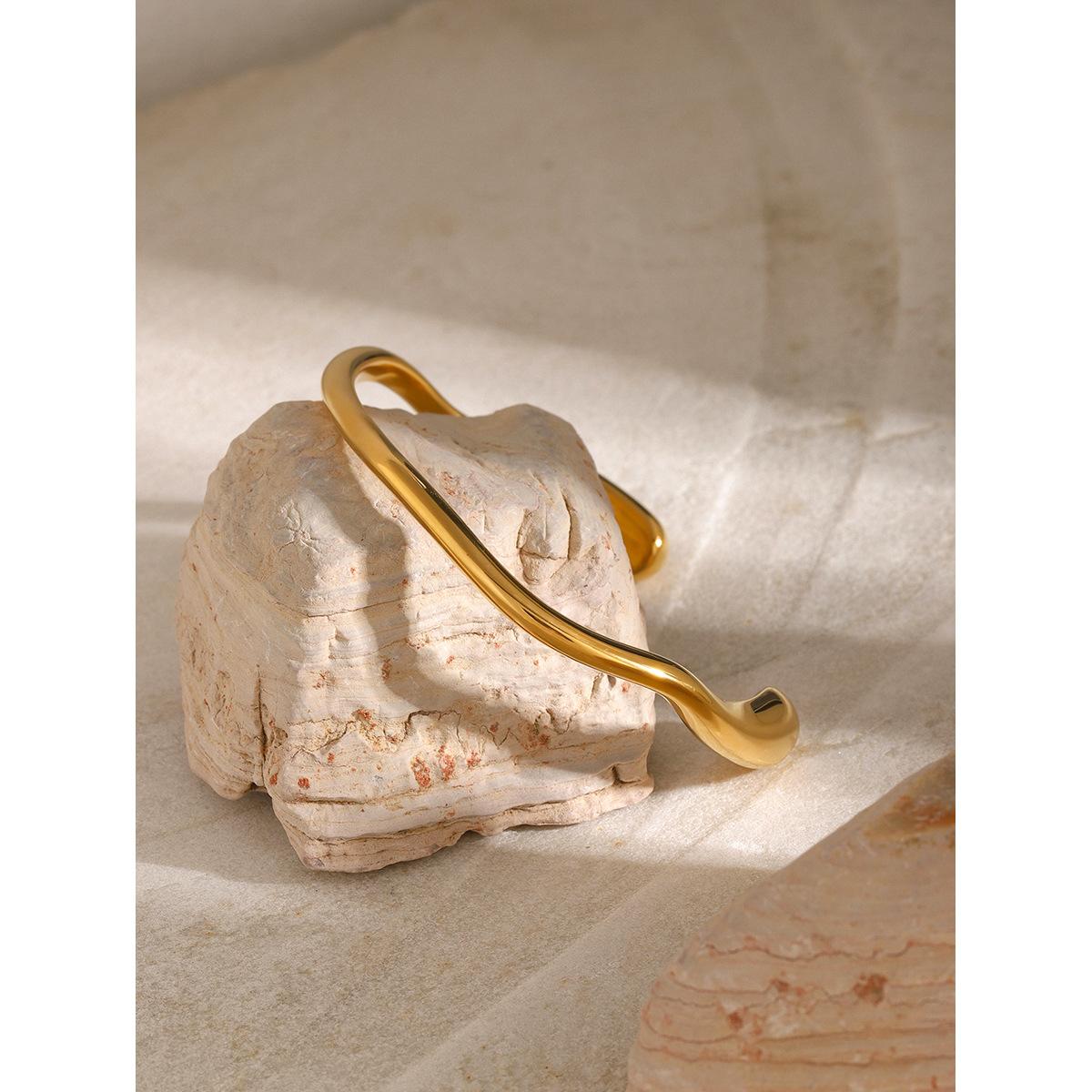 Pulsera abierta de acero inoxidable chapado en oro de 18k europeo y americano, estilo frío ins, moda simple, de alta calidad, lisa, de acero de titanio