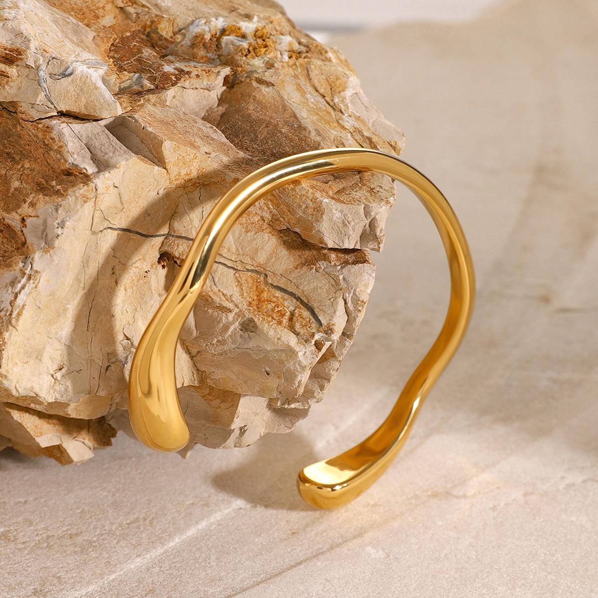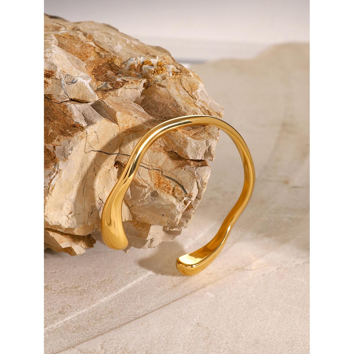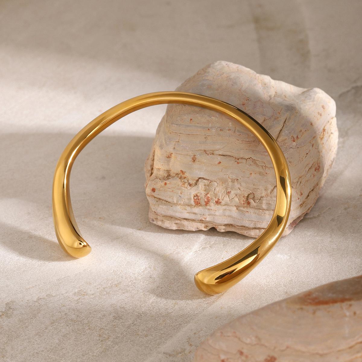 Pulsera abierta de acero inoxidable chapado en oro de 18k europeo y americano, estilo frío ins, moda simple, de alta calidad, lisa, de acero de titanio