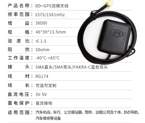 Antena Activa de Doble Banda Gps+ Beidou Antena de Navegación para Dvd de Coche Macho Sma