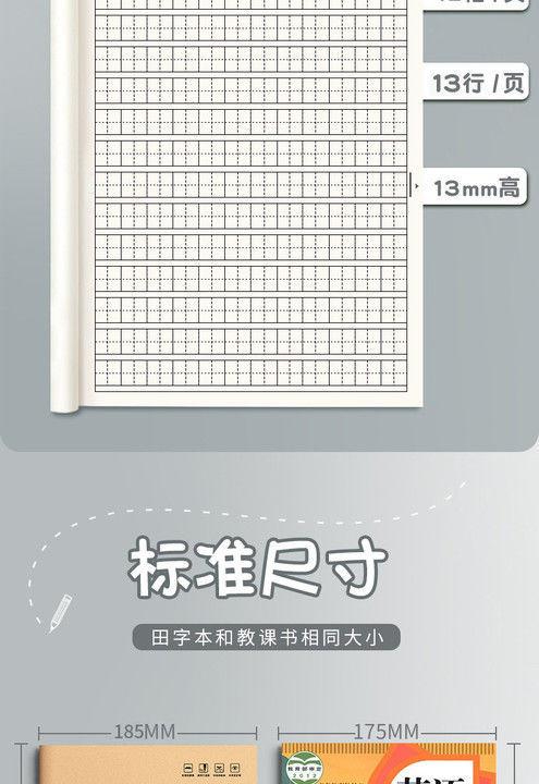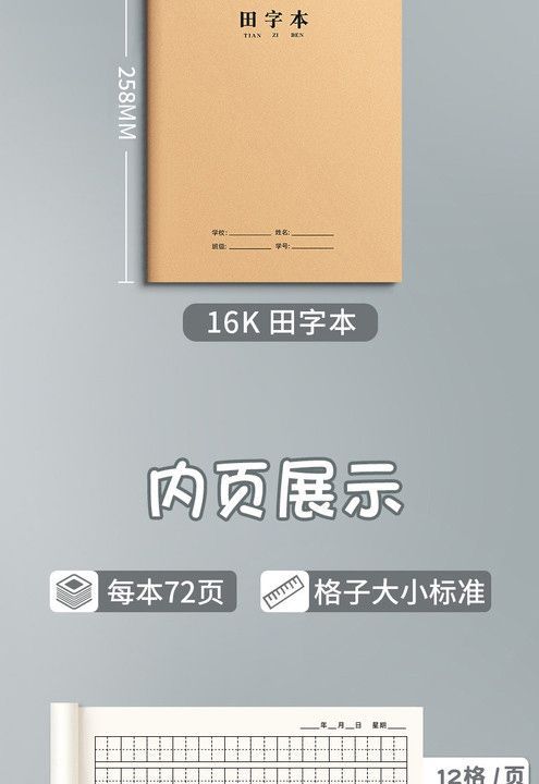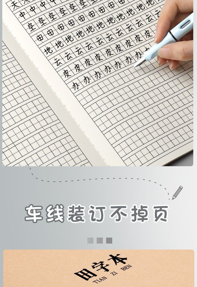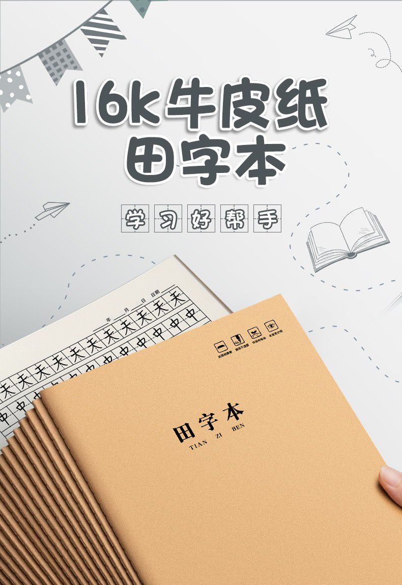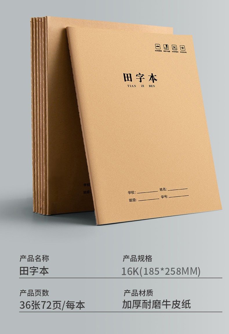 Libro de caracteres Tian de 16K Papel Kraft engrosado Grado Junior 3-6 libro de caracteres Tian Libro de ejercicios para estudiantes de primaria y secundaria