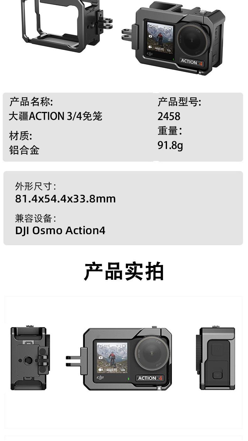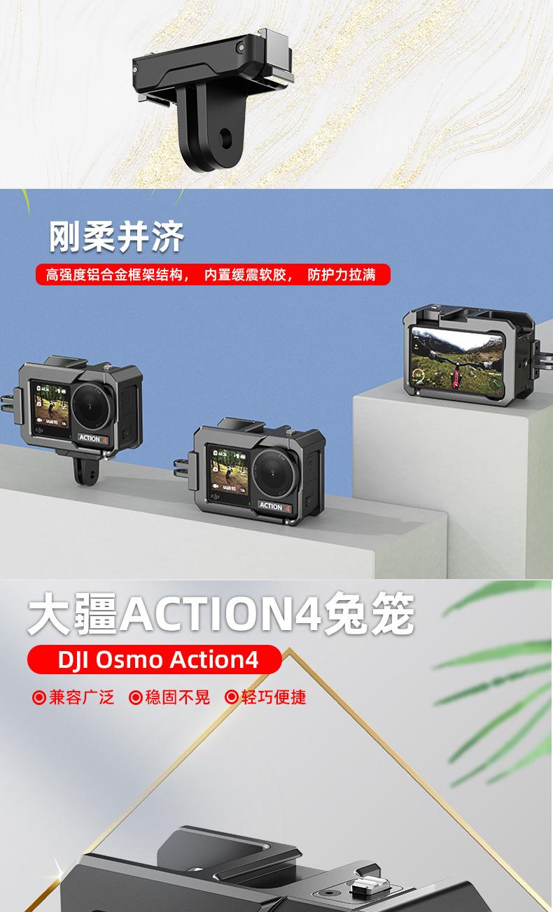 Action4 Jaula para Conejo Marco Protector de Metal Cámara Deportiva Accesorios Osmo Marco de Aleación de Aluminio Dji Action3