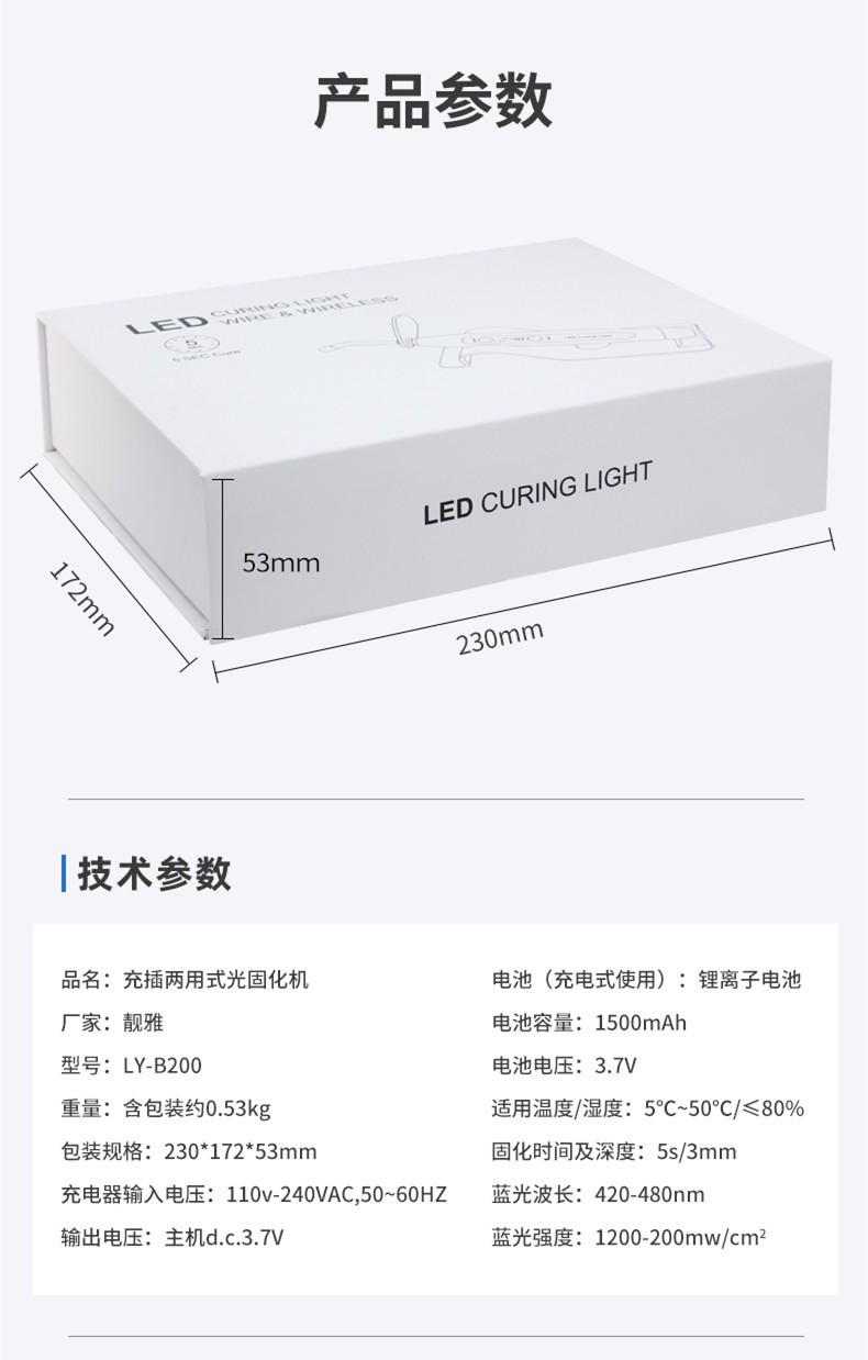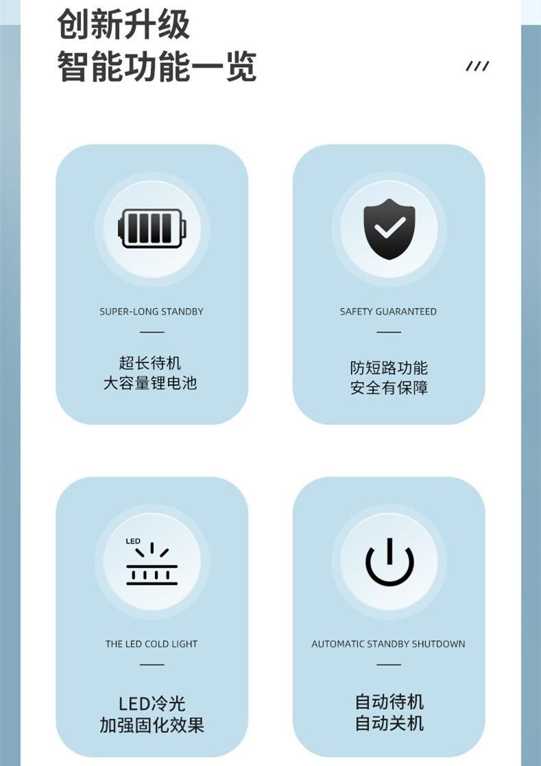 I. Características: ¡Se puede usar mientras se carga! ¡No hay necesidad de preocuparse por quedarse sin energía y no poder usarlo! Máquina de fotocurado de doble uso