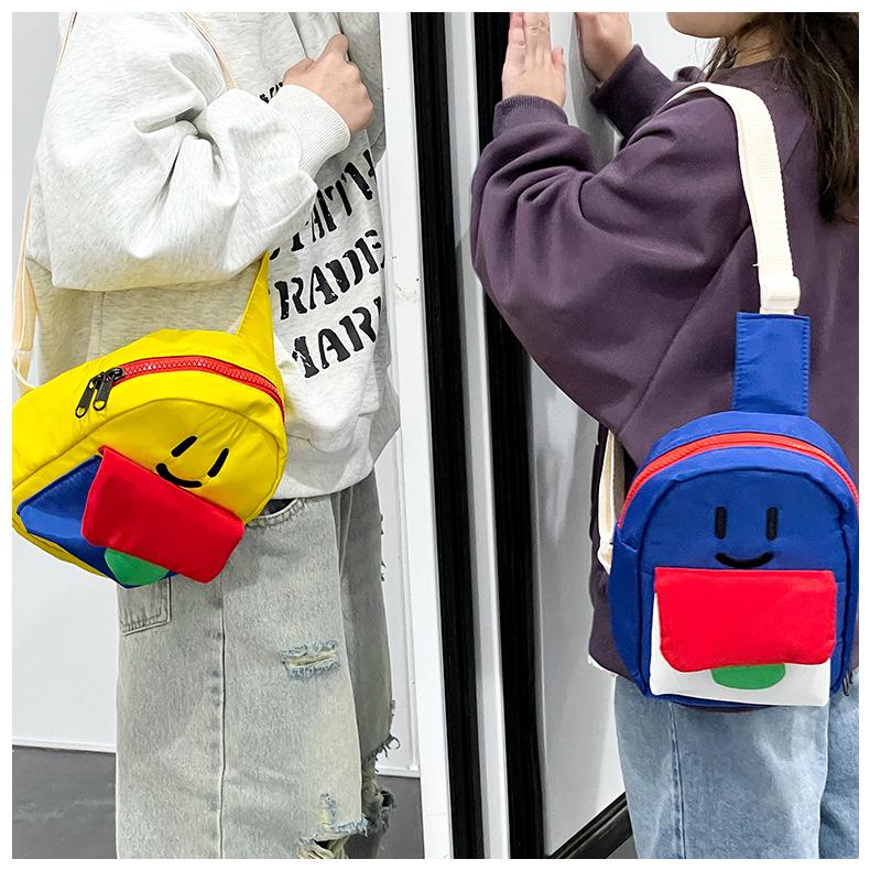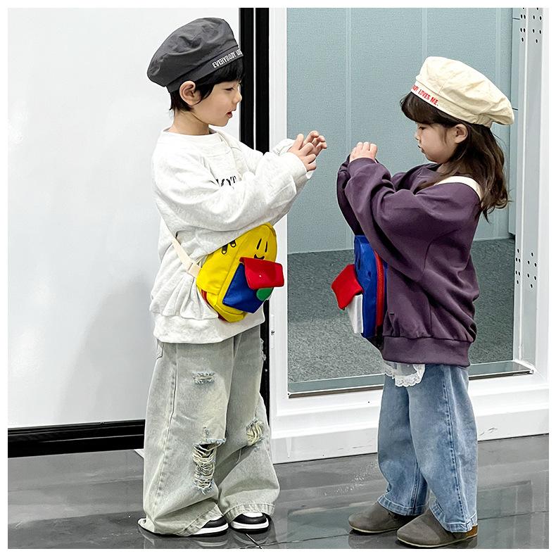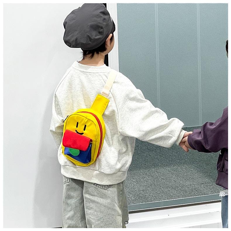 Bolso bandolera transfronterizo para niños y niñas de jardín de infantes y primaria, bolso de hombro con dibujos animados de emoticonos.