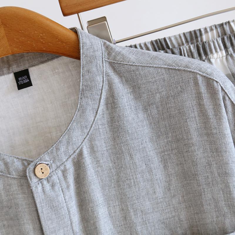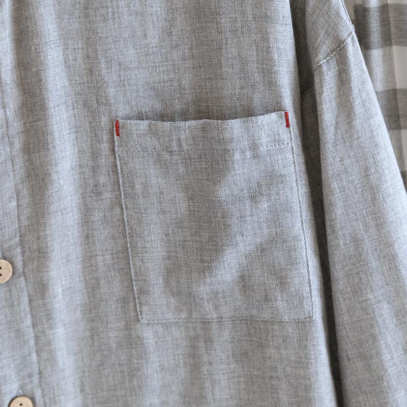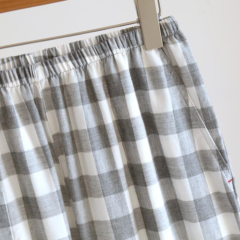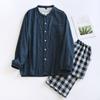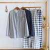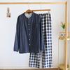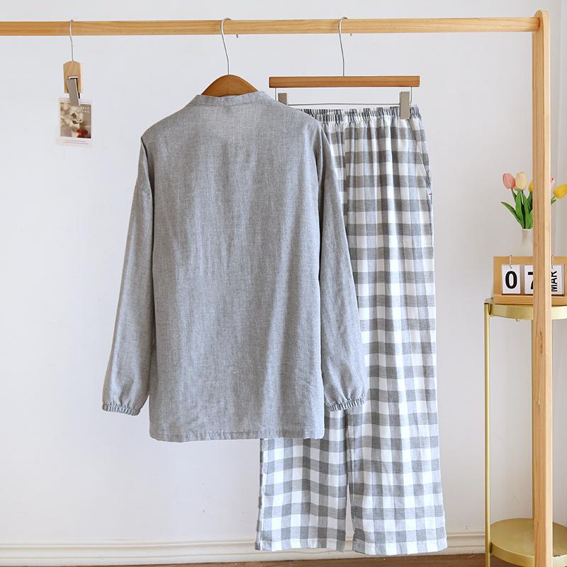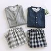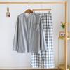 Pijama de hilo doble capa sin estampado estilo japonés para hombre, algodón a cuadros, ropa para el hogar, traje cárdigan de gasa para primavera y otoño para hombre