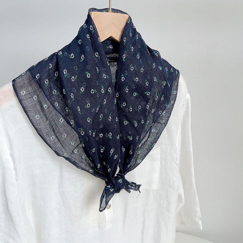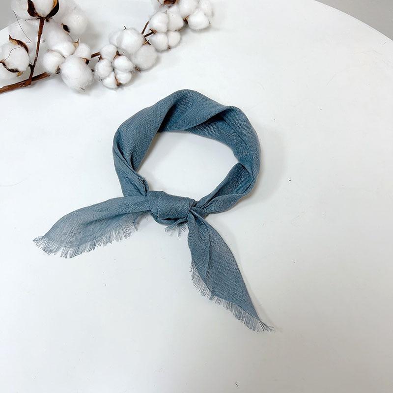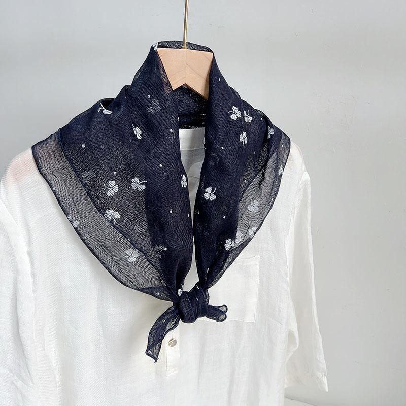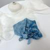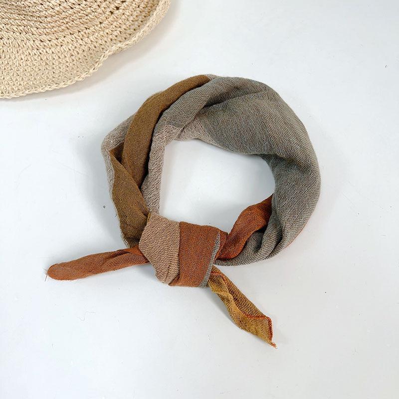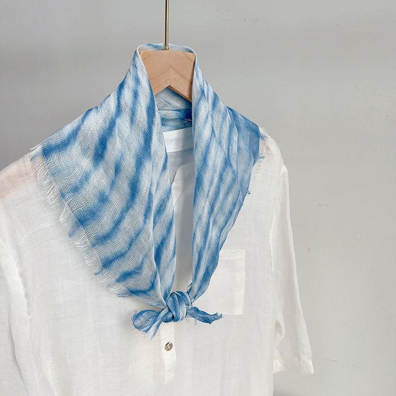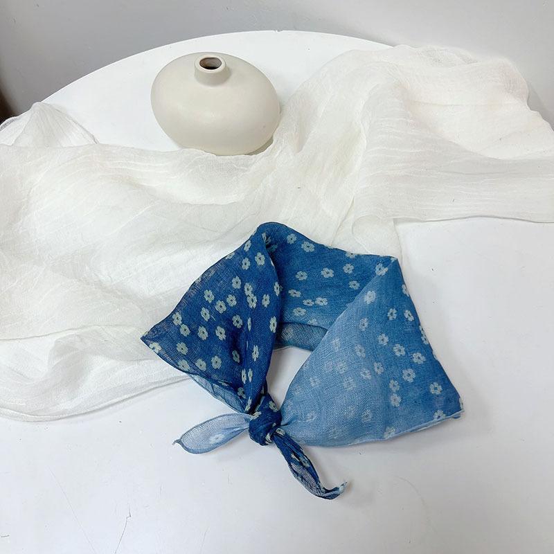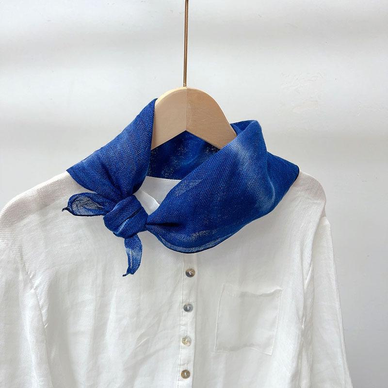 Bufanda cuadrada de lino con estampado degradado teñido en azul artificial retro de primavera y verano, bufanda de seda pequeña con protección para el cuello para mujer, artística y versátil, nueva