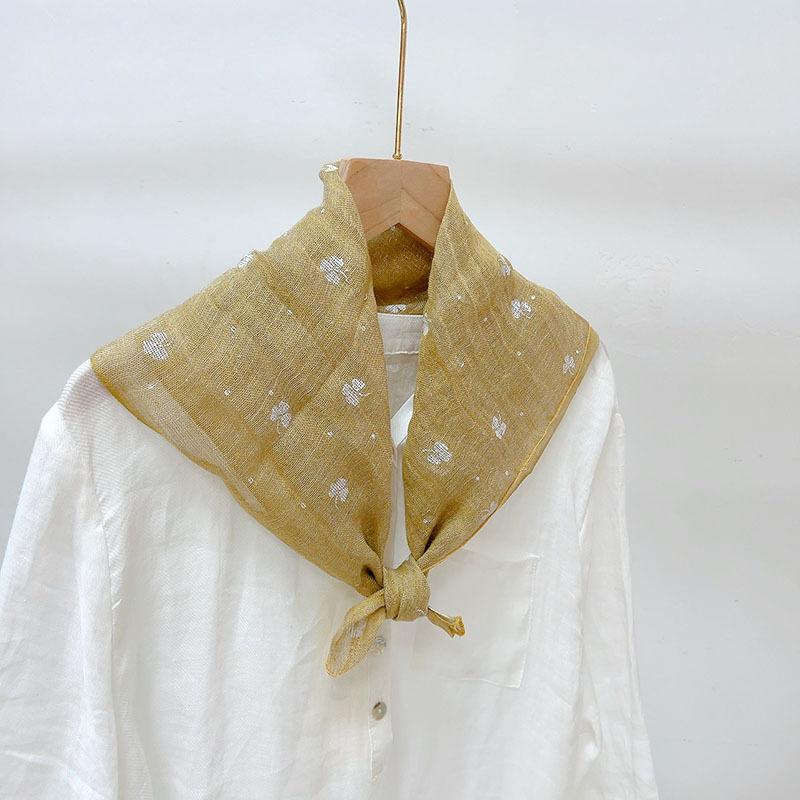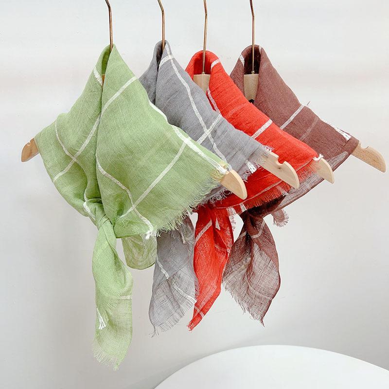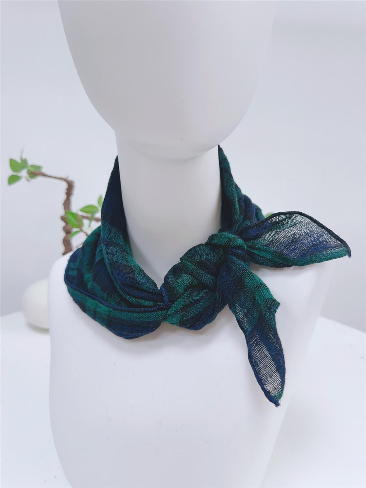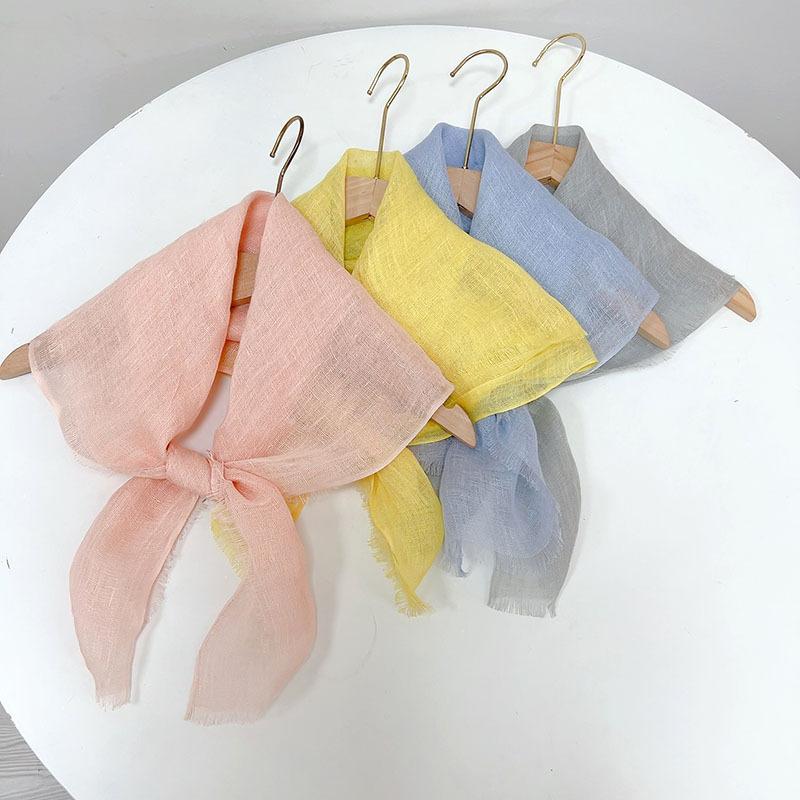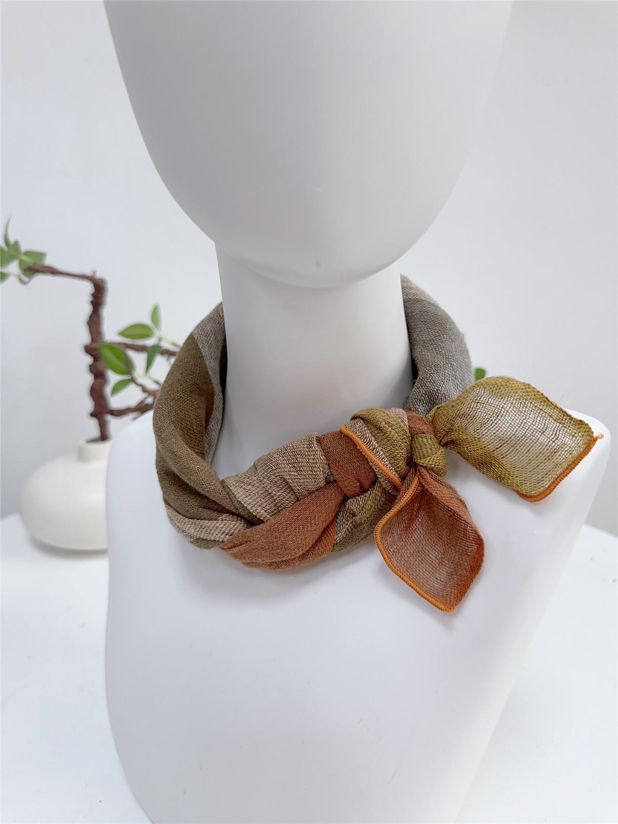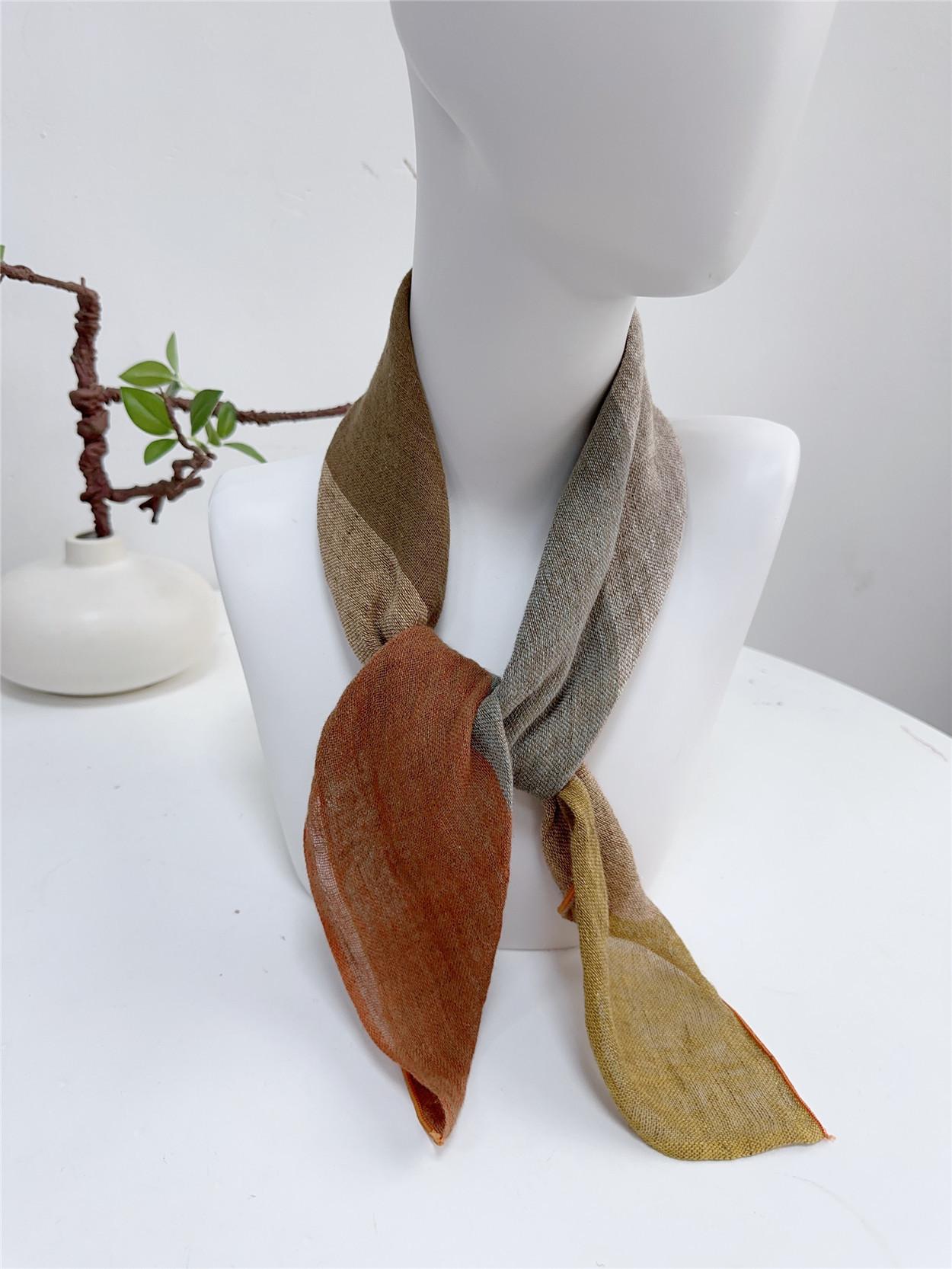 Bufanda cuadrada de lino con estampado degradado teñido en azul artificial retro de primavera y verano, bufanda de seda pequeña con protección para el cuello para mujer, artística y versátil, nueva
