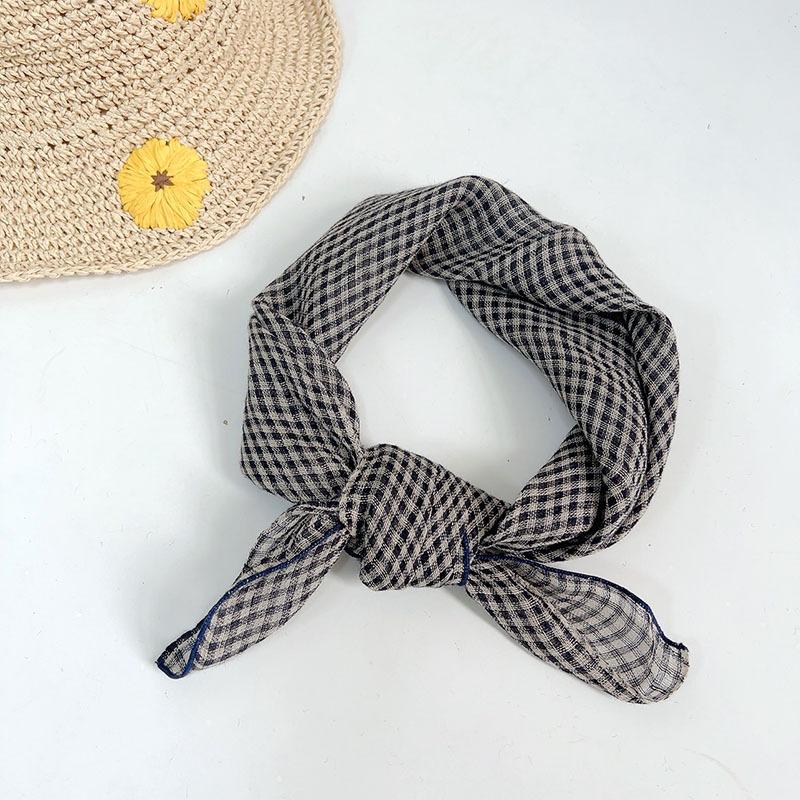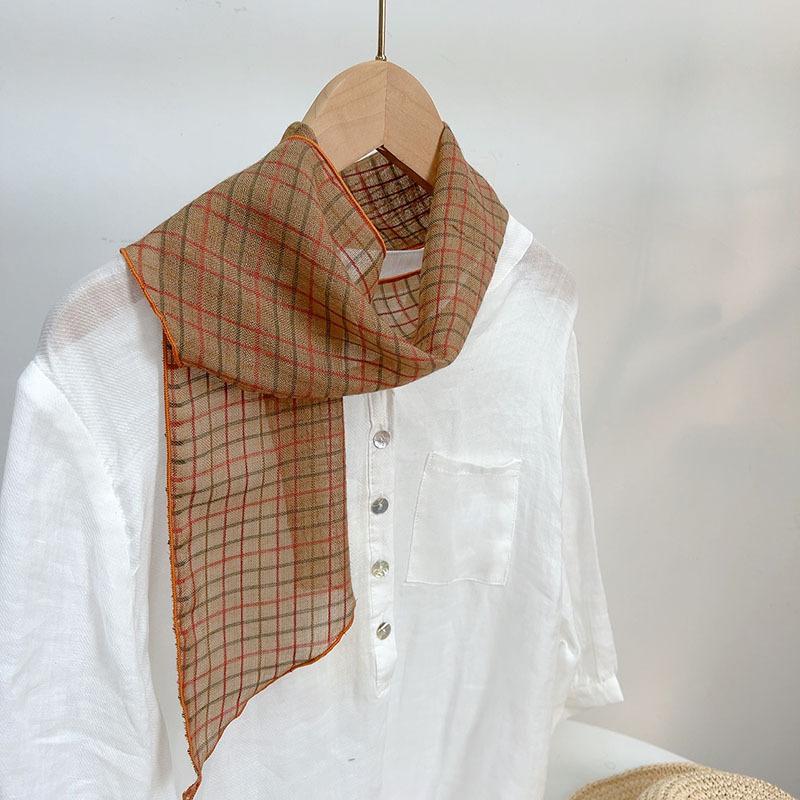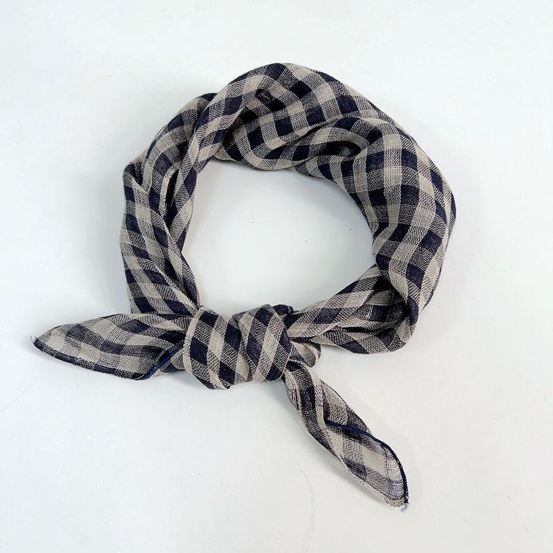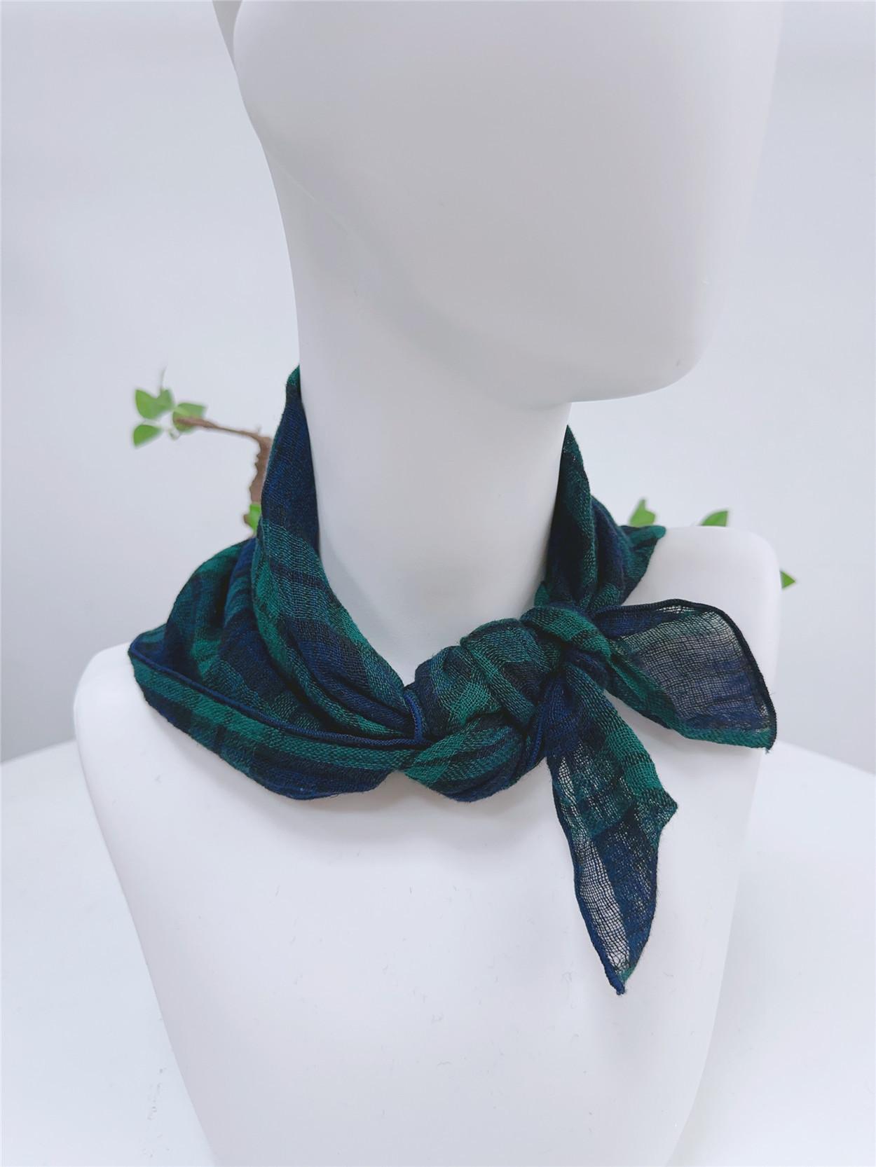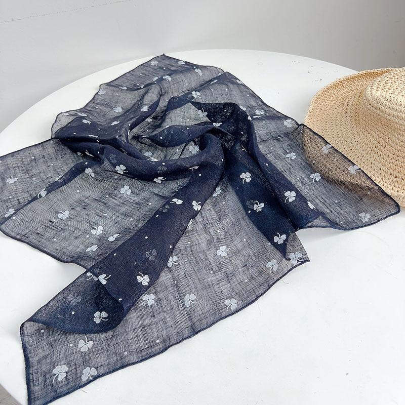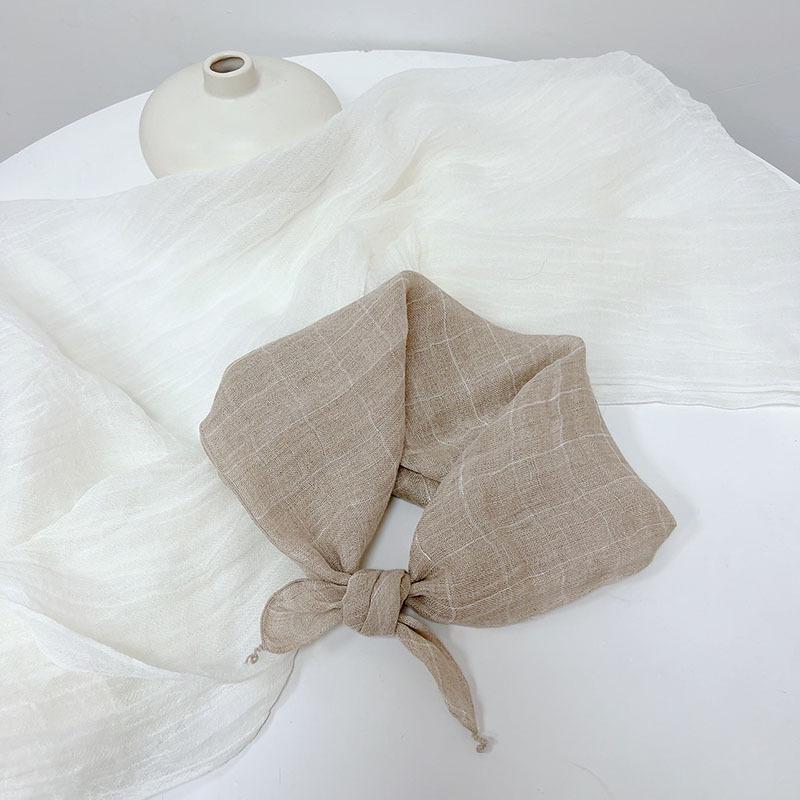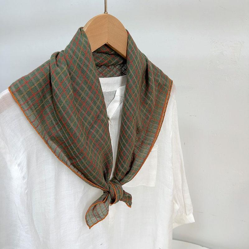 Bufanda cuadrada de lino con estampado degradado teñido en azul artificial retro de primavera y verano, bufanda de seda pequeña con protección para el cuello para mujer, artística y versátil, nueva
