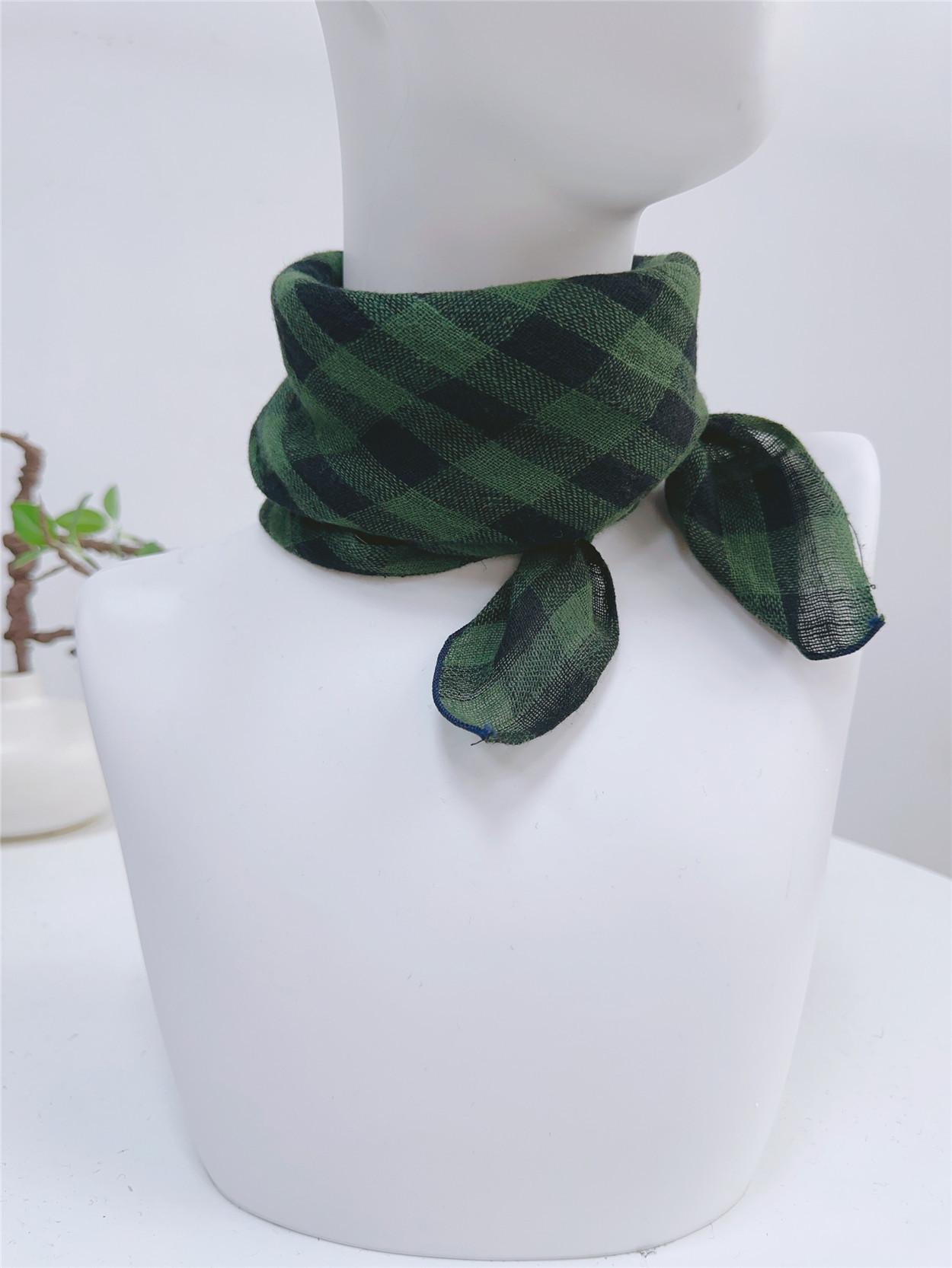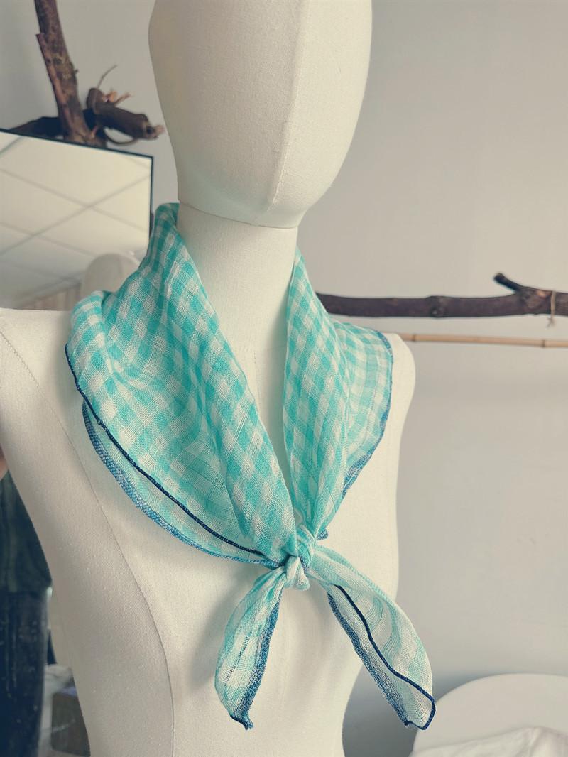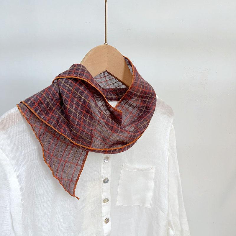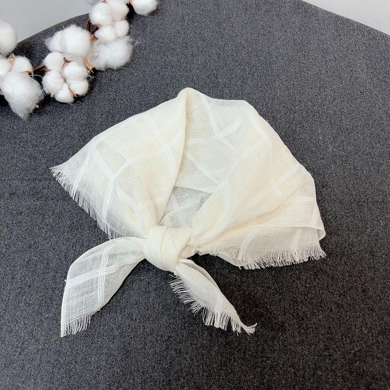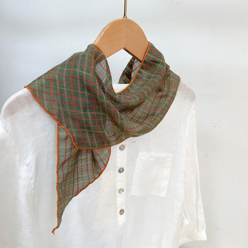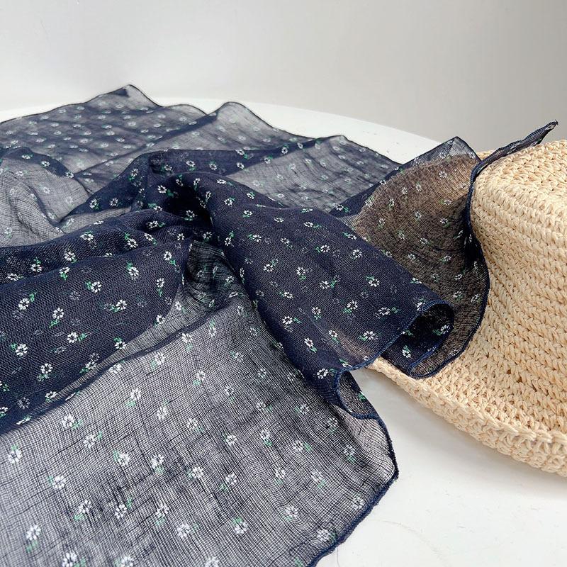 Bufanda cuadrada de lino con estampado degradado teñido en azul artificial retro de primavera y verano, bufanda de seda pequeña con protección para el cuello para mujer, artística y versátil, nueva