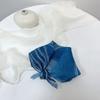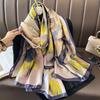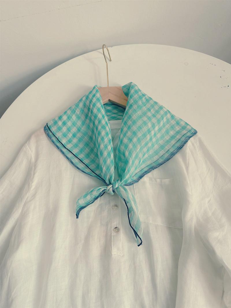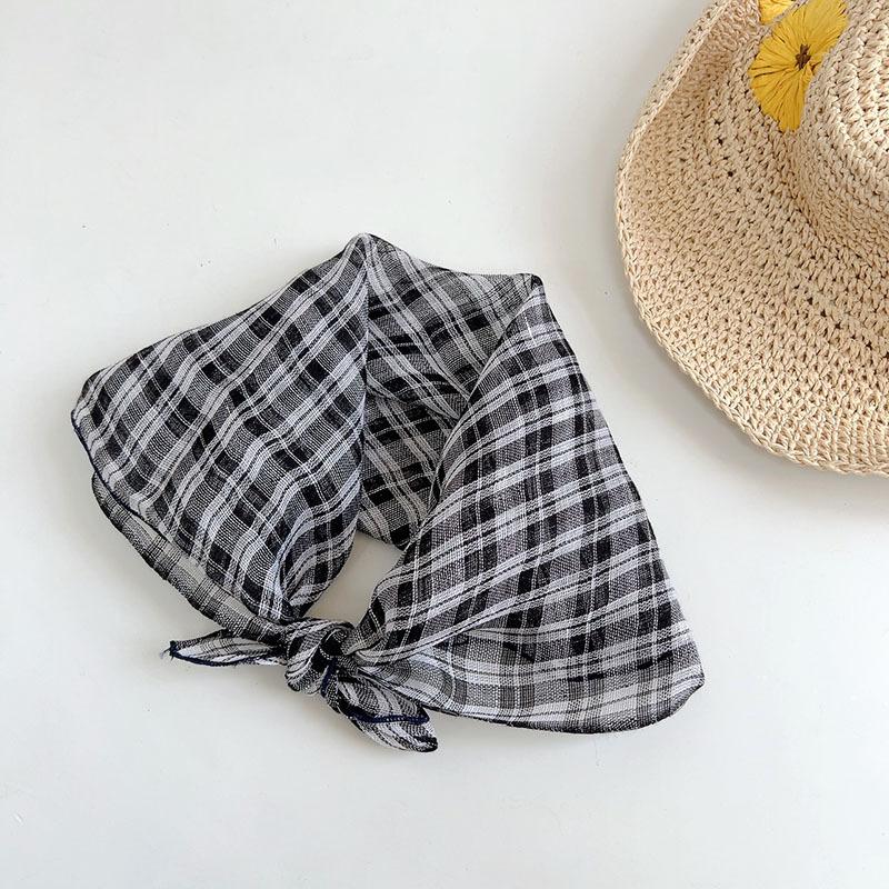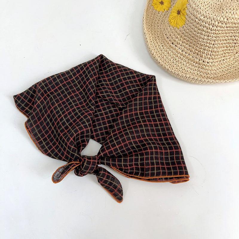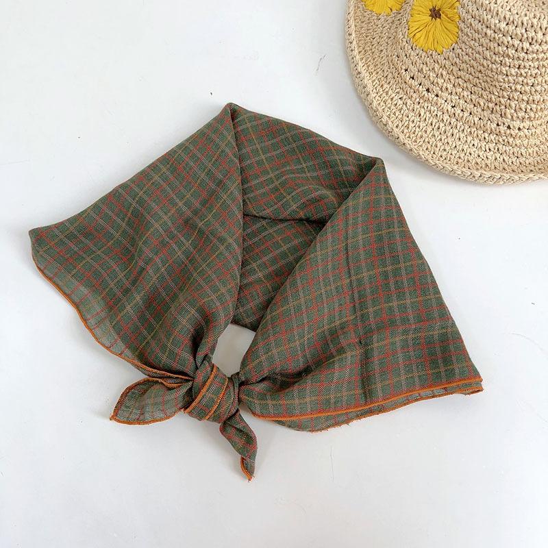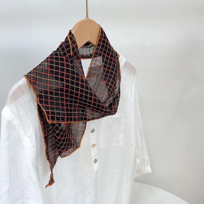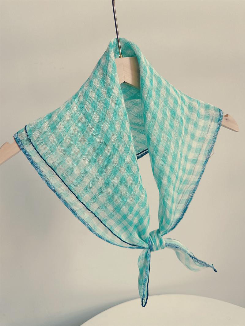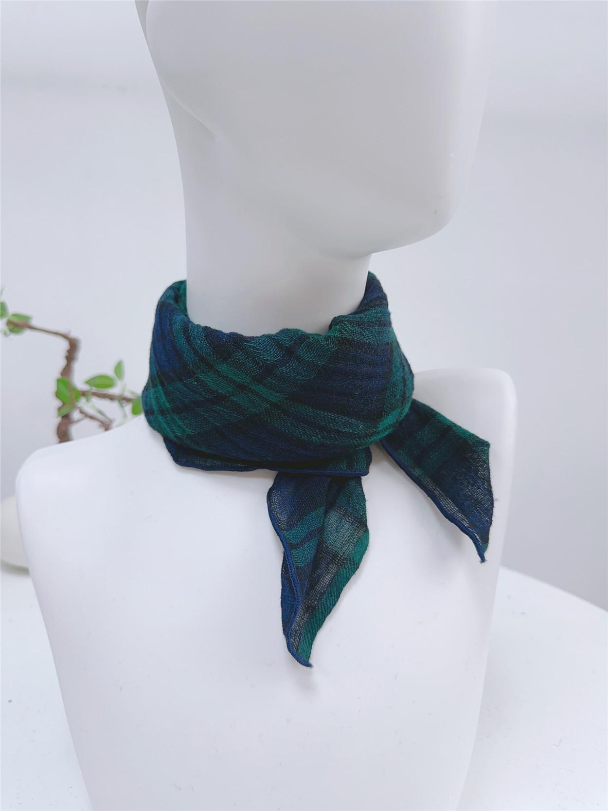 Bufanda cuadrada de lino con estampado degradado teñido en azul artificial retro de primavera y verano, bufanda de seda pequeña con protección para el cuello para mujer, artística y versátil, nueva