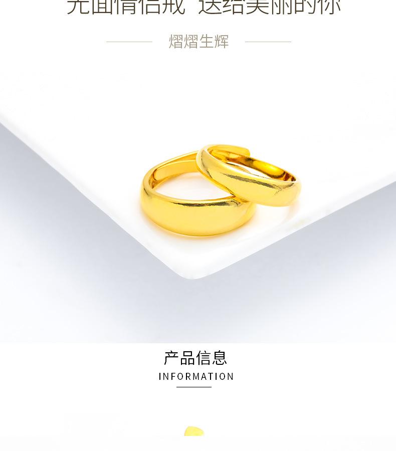 Anillo de pareja grueso y brillante, de moda para hombres y mujeres, simple anillo de oro de imitación con apertura, anillo brillante chapado en oro, joyería