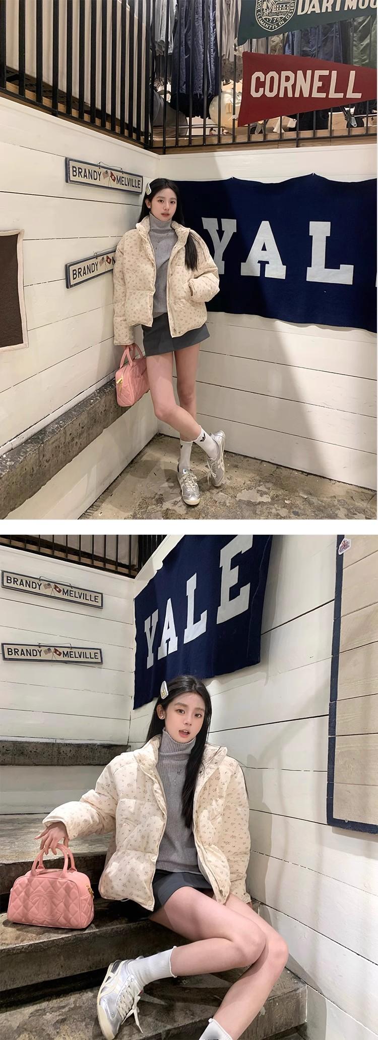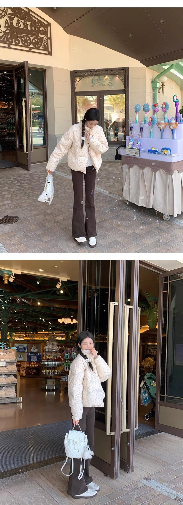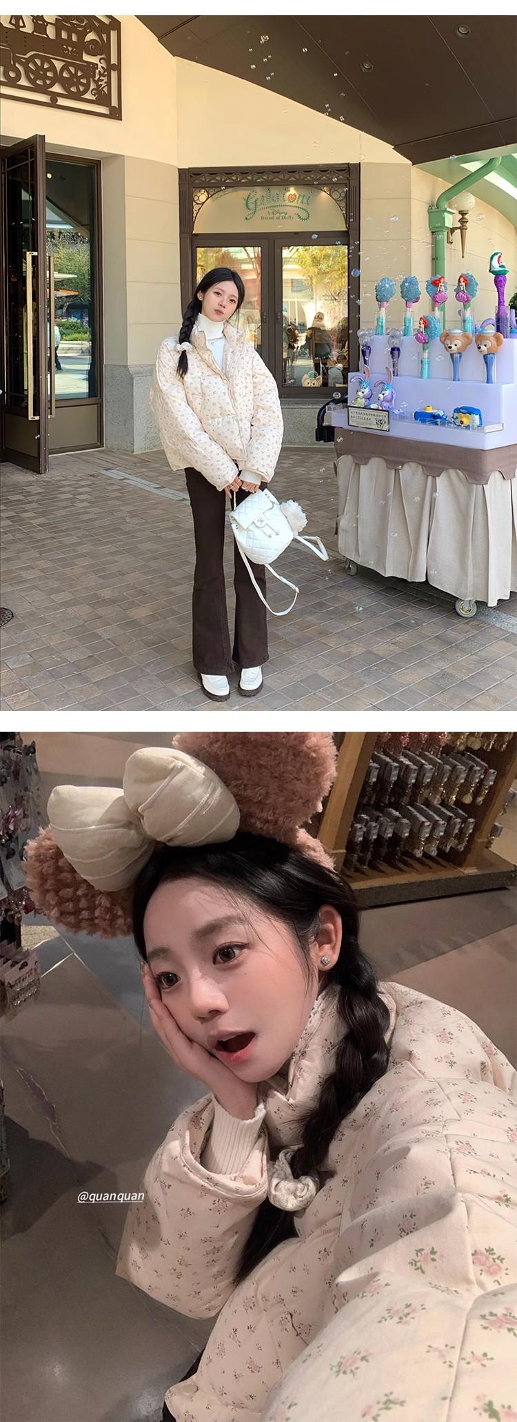 Chaqueta corta de plumón de algodón con estampado floral pequeño de estilo coreano para mujer, abrigo ligero y moderno de estilo occidental para invierno de 2024.