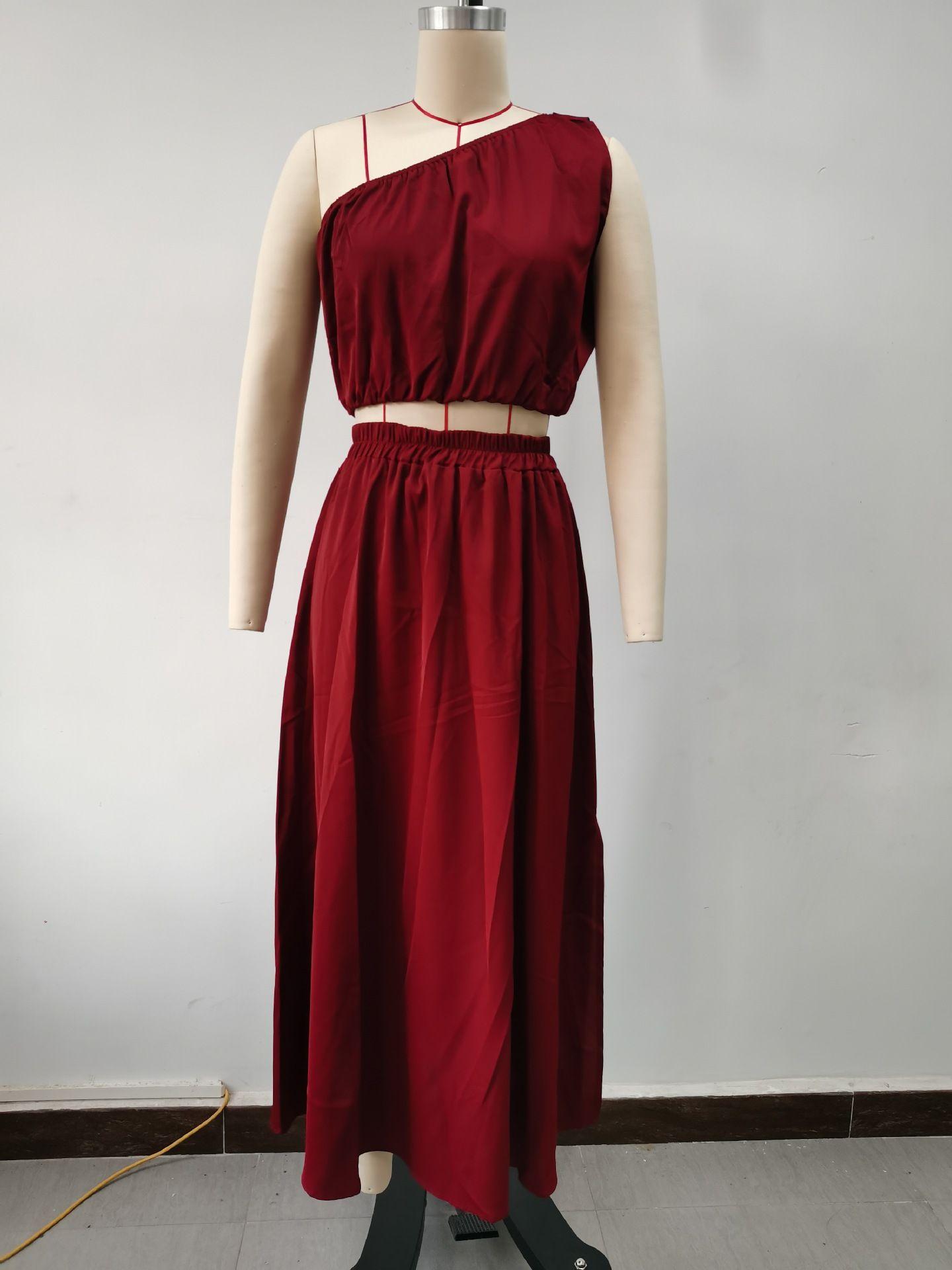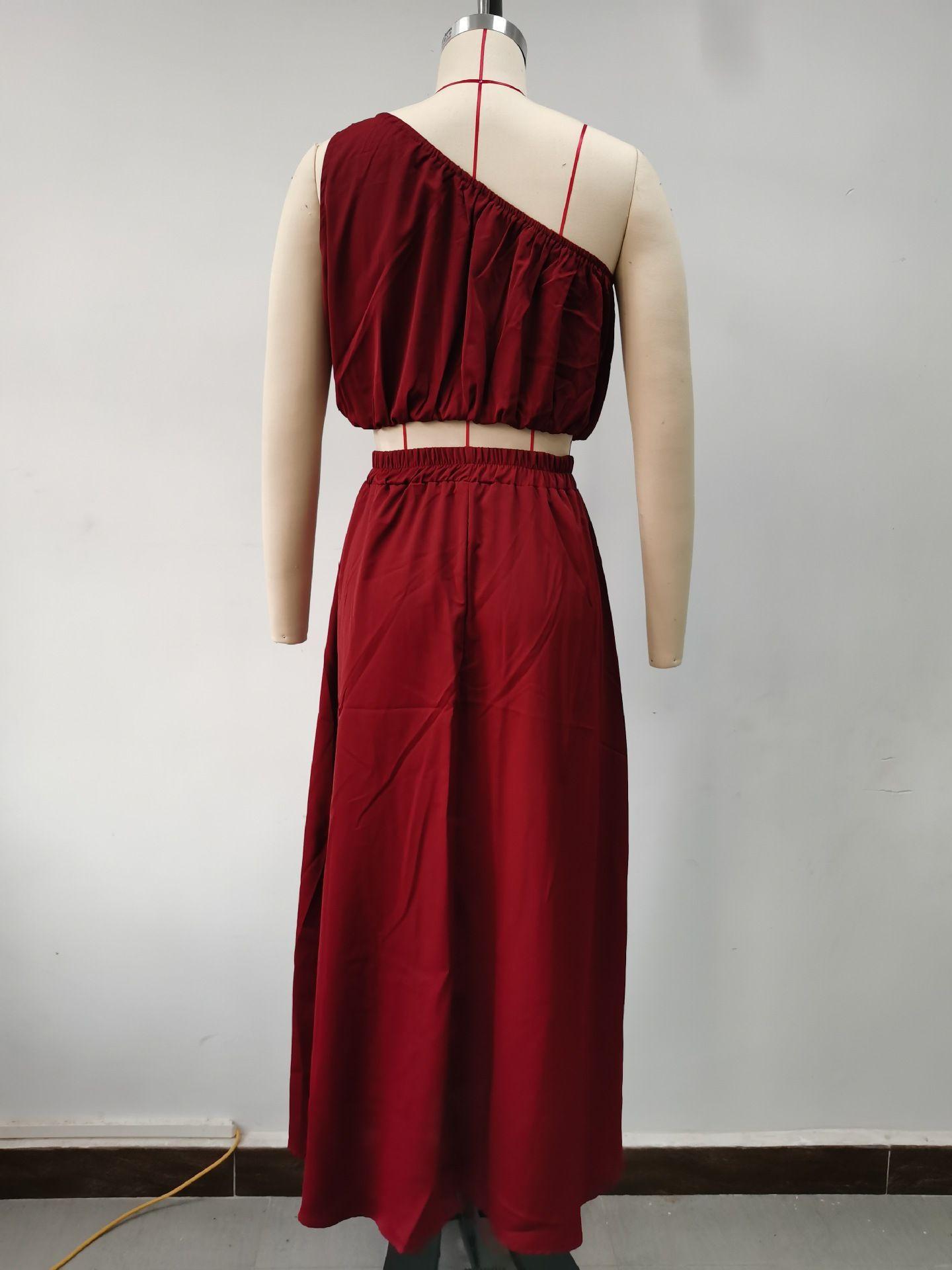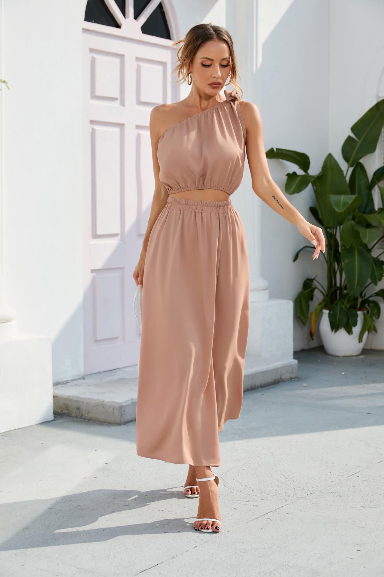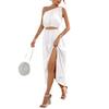Traje de Lazo de Hombro Inclinado de Moda para Mujer de Estación Independiente de Amazon 2025 Vestido de Vuelo Completo con Abertura Conjunto de Dos Piezas para Mujer