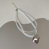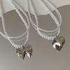 Collar de doble capa con colgante de lazo de metal y perlas para mujer, estilo exagerado, único y combinable, cadena de clavícula.