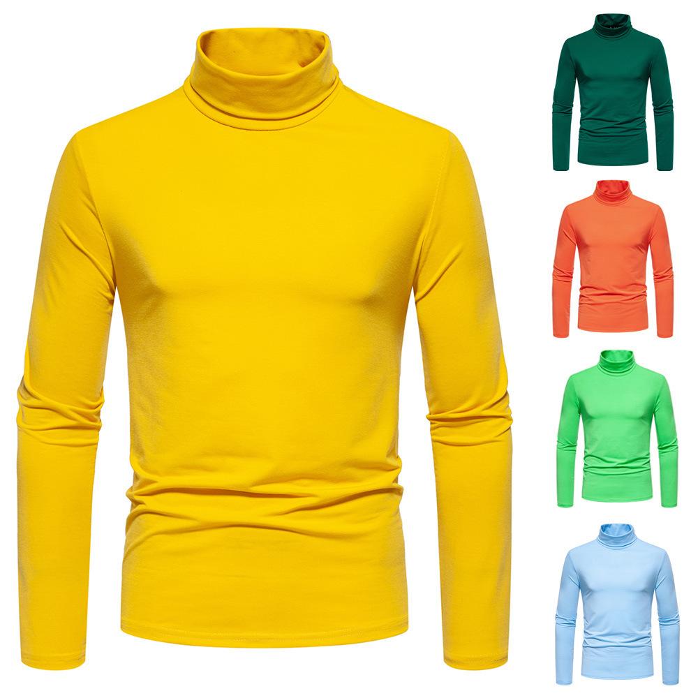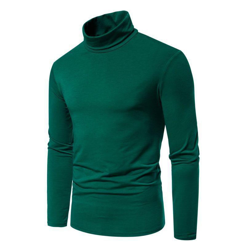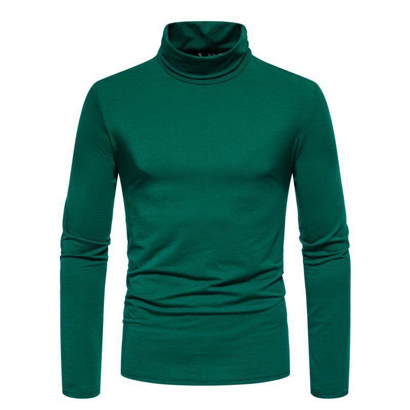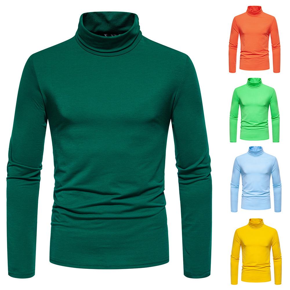 Camiseta de cuello semialto de color sólido para hombre, talla europea y americana, jersey informal de talla grande, camisa de manga larga, abrigo base, novedad de 2024