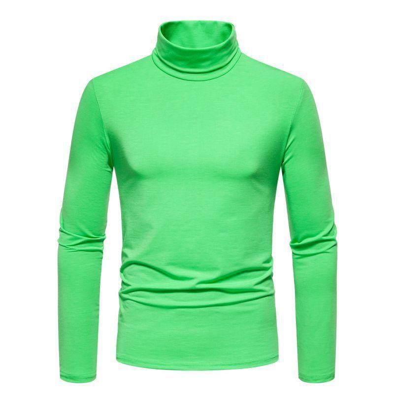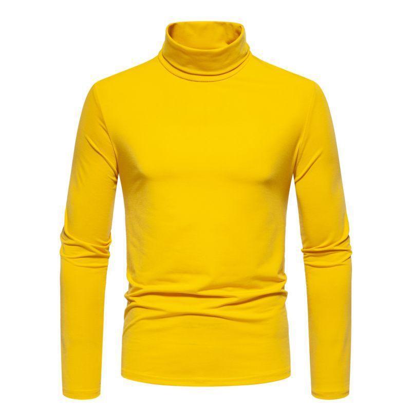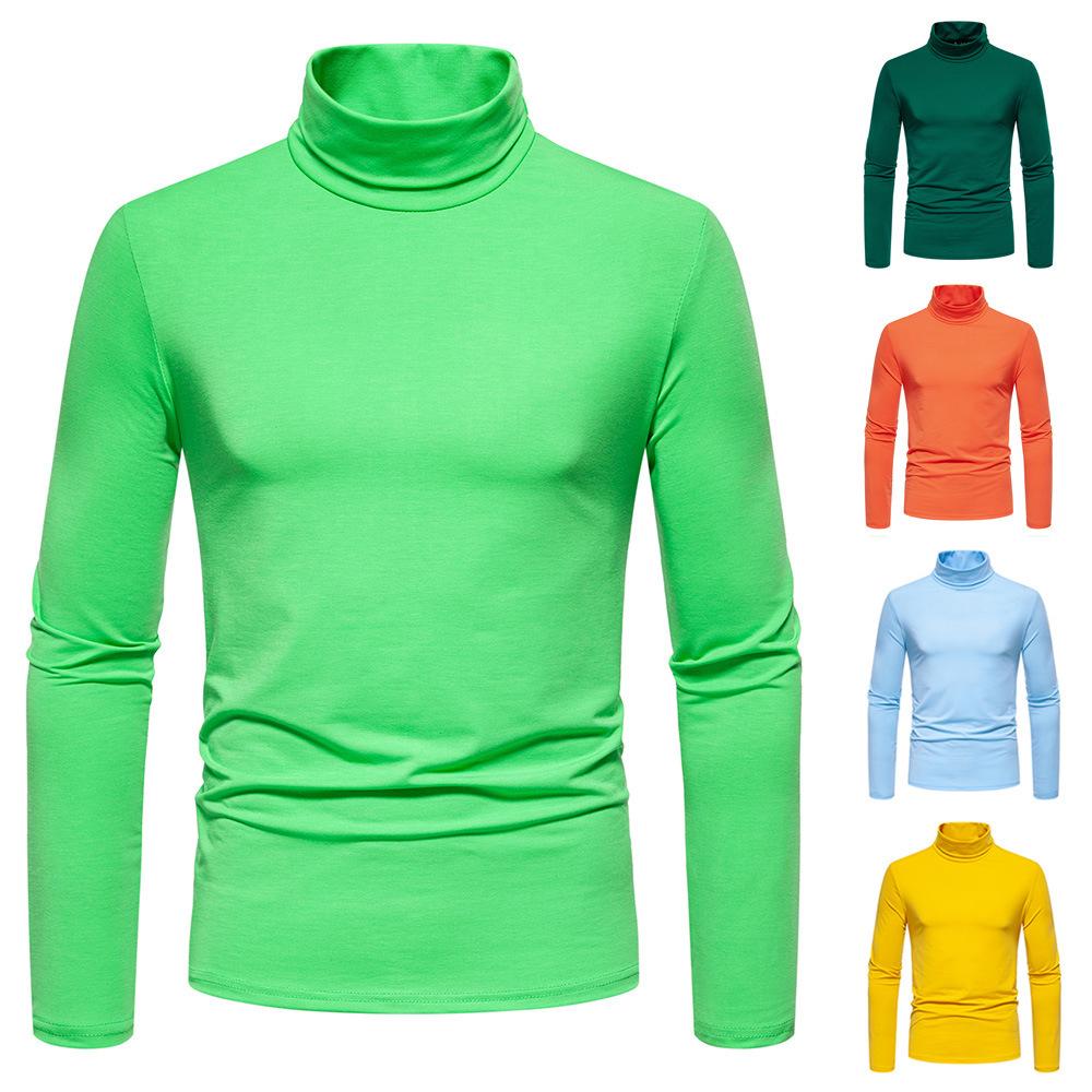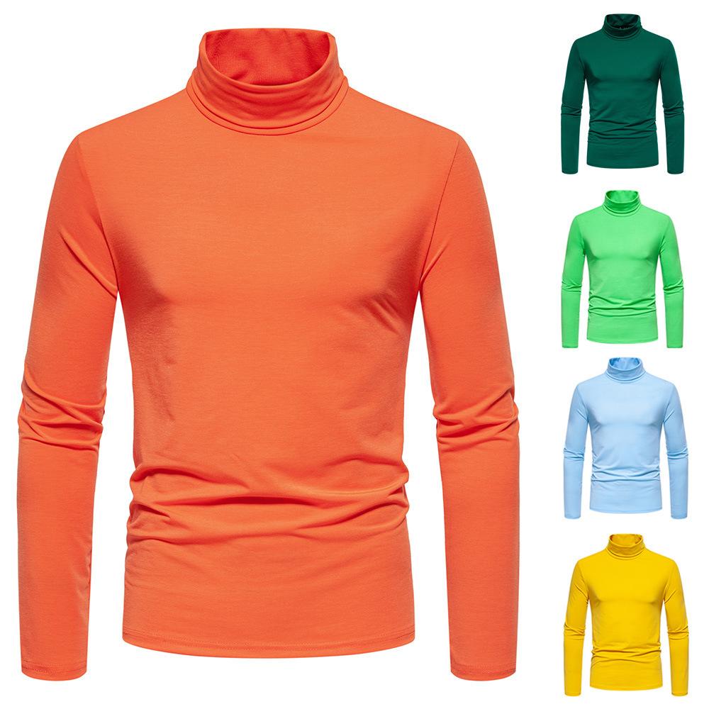 Camiseta de cuello semialto de color sólido para hombre, talla europea y americana, jersey informal de talla grande, camisa de manga larga, abrigo base, novedad de 2024