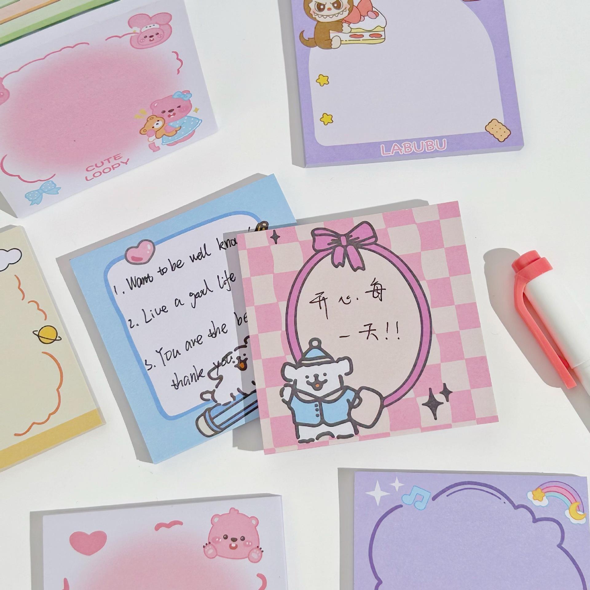 Nuevo bloc de notas de castor con lindos bucles, notas adhesivas para estudiantes, mensajes y pegatinas