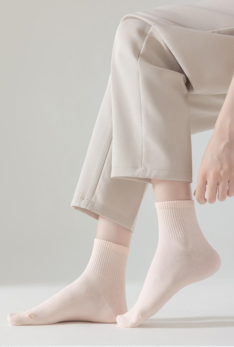 Compra Calcetines de tubo medio cortos para mujer, de primavera y otoño, finos, de algodón puro, transpirables, deportivos, antideslizantes, en blanco y negro, para verano al por mayor en Joom.pro