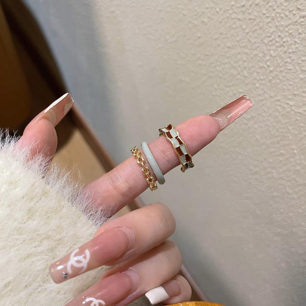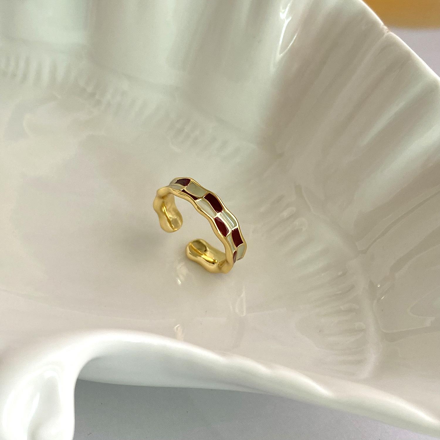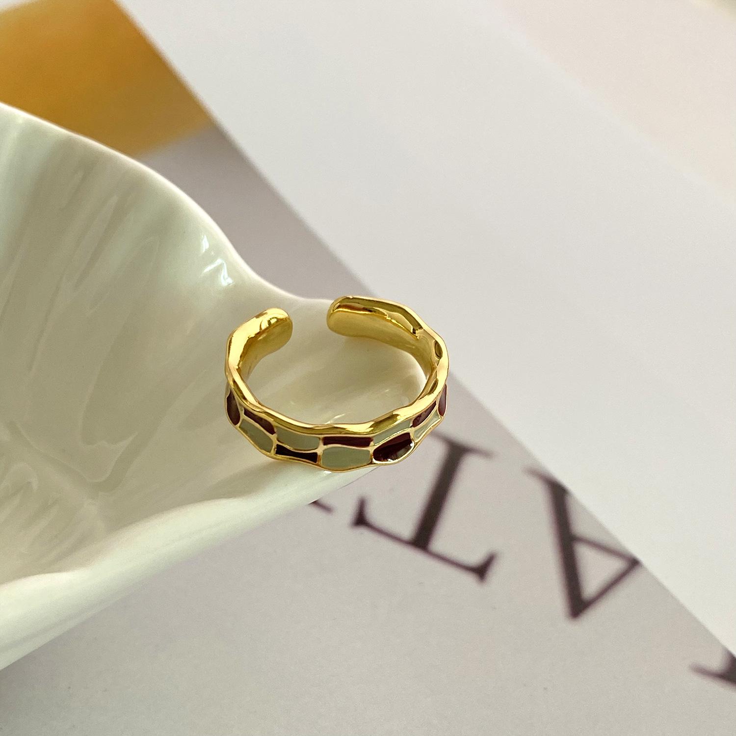 Marca: Anillo abierto de gota de aceite de doble capa de ajedrez, anillo de dedo índice simple y versátil
