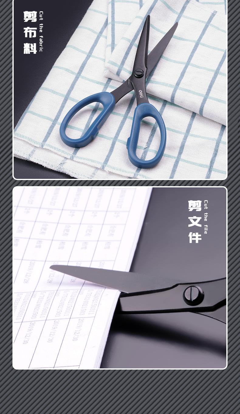 Tijeras de hoja negra Deli, tijeras de acero inoxidable, tijeras antiadherentes, pequeñas y grandes, de seguridad, hechas a mano, cuchillo para cortar papel, exquisitas tijeras de oficina.