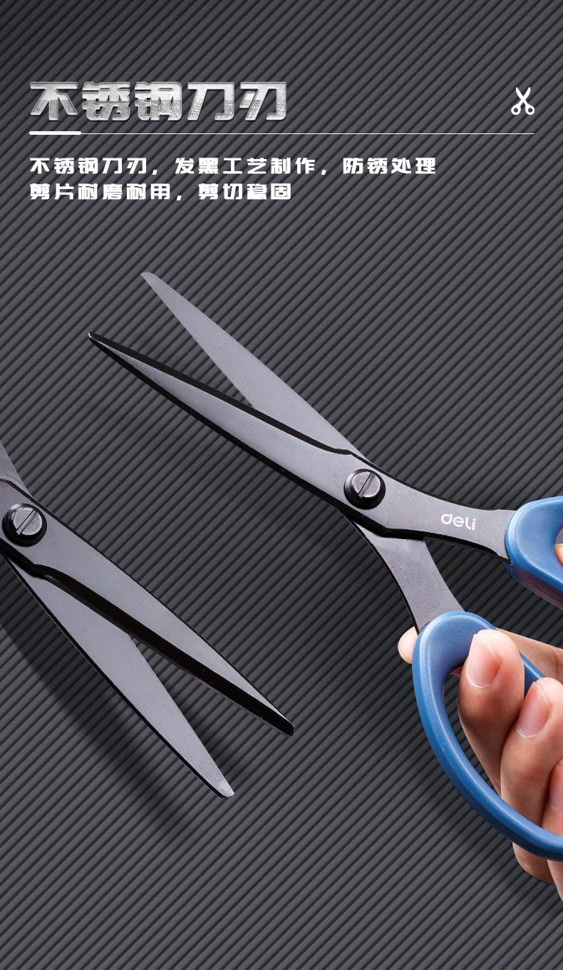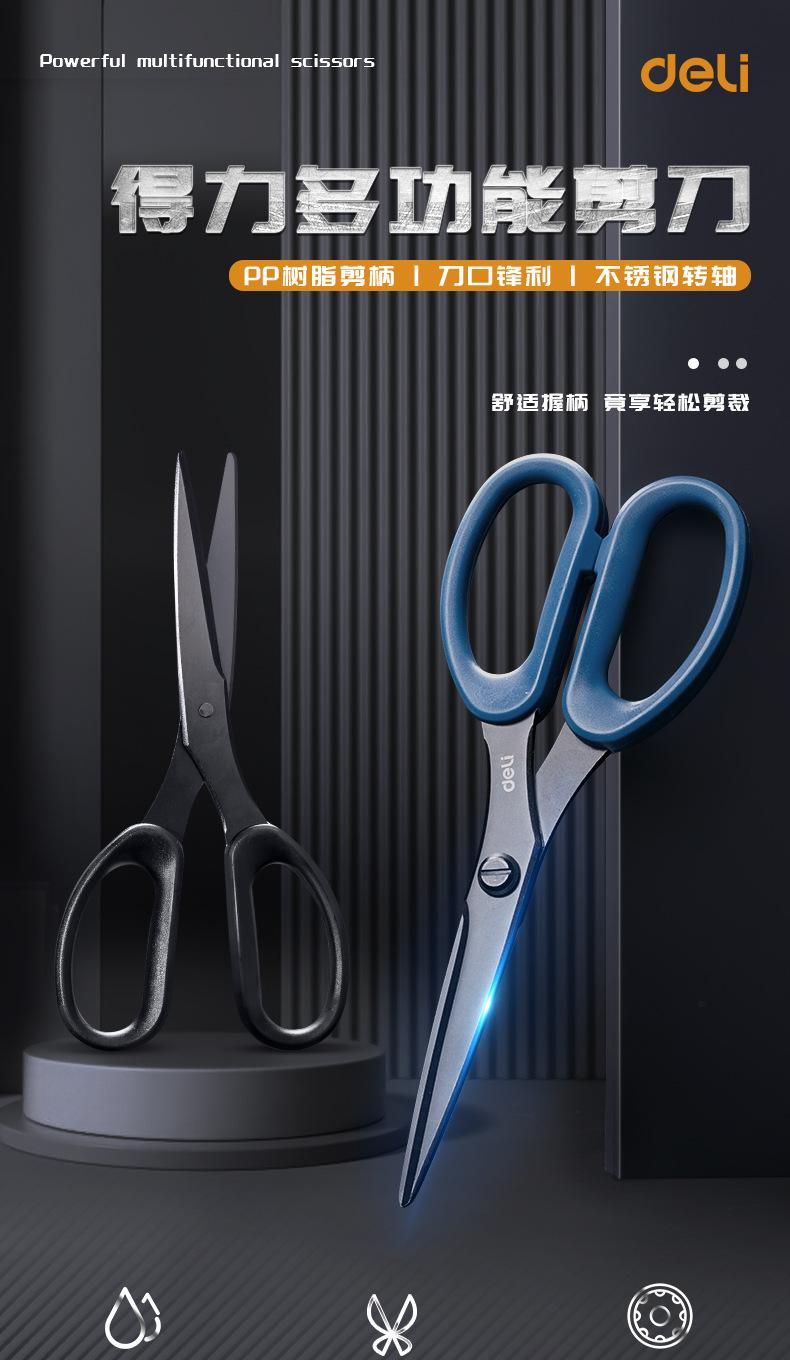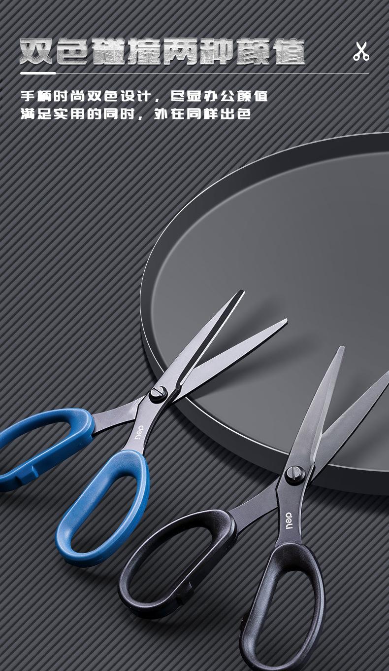 Compra Tijeras de hoja negra Deli, tijeras de acero inoxidable, tijeras antiadherentes, pequeñas y grandes, de seguridad, hechas a mano, cuchillo para cortar papel, exquisitas tijeras de oficina. al por mayor en Joom.pro