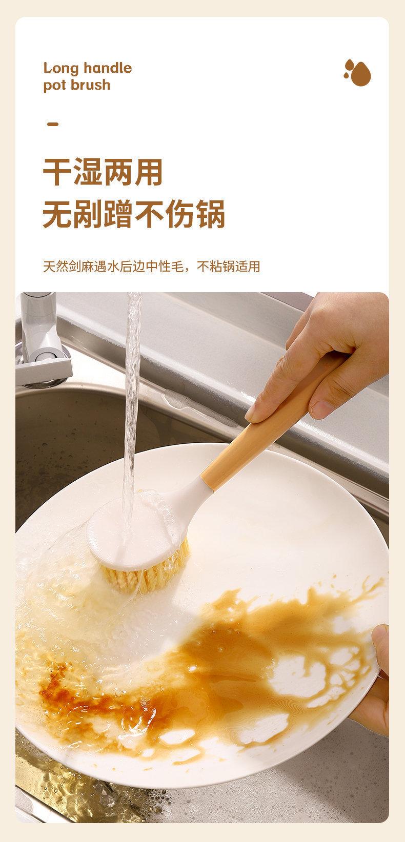 Cepillo para Lavar Ollas con Mango de Madera Imitación Sisal Multifuncional de Mango Largo Cepillo para Ollas Limpieza de Cocina Cepillo para Ollas Antiadherentes Cepillo para Platos y Tazones