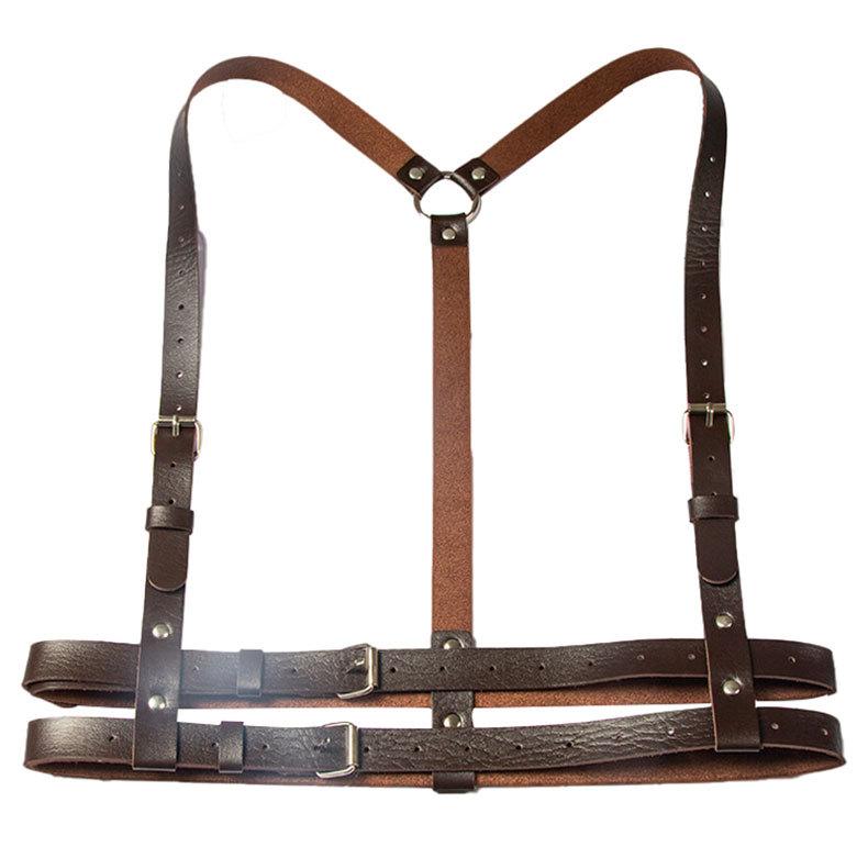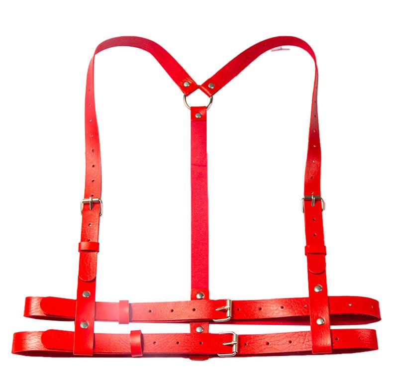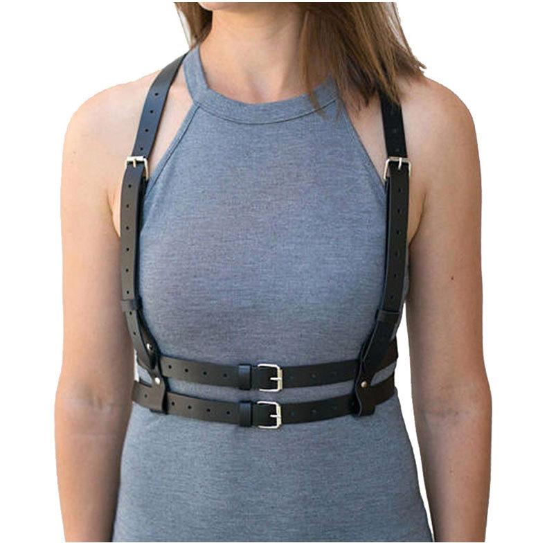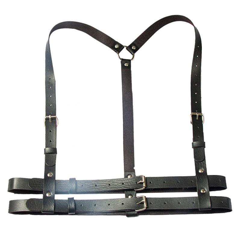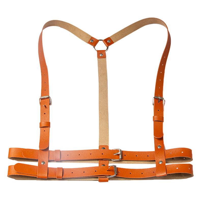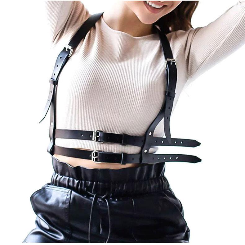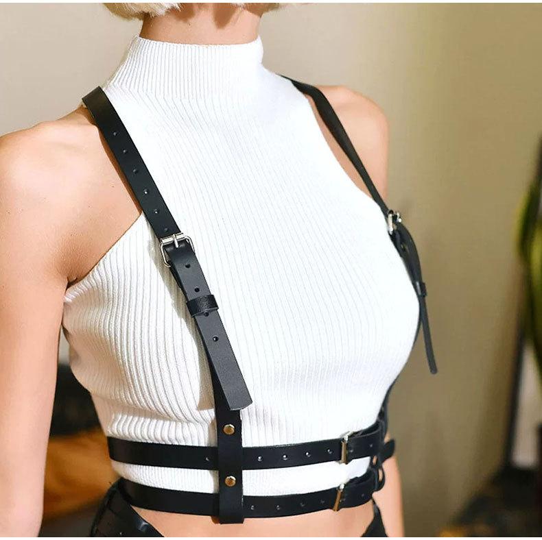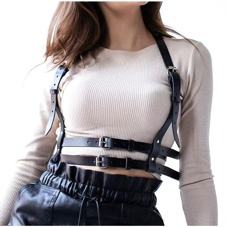 【Directo de Fábrica】Punk Europeo y Americano Cinturón de Cuero de Doble Capa Cinturón de Restricción Personalidad Disfraz para Actuación Tirantes Cadena de Cintura Integrada