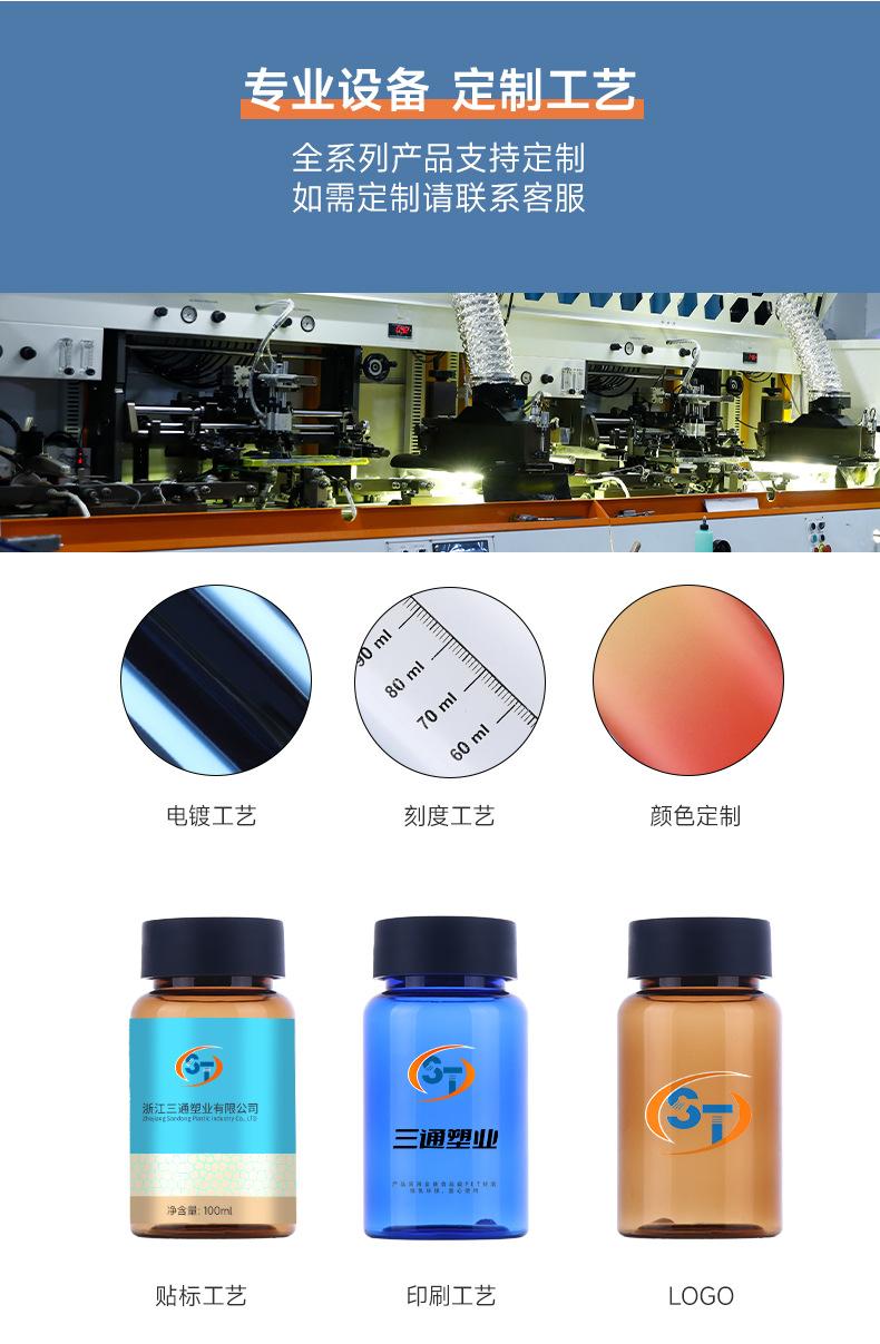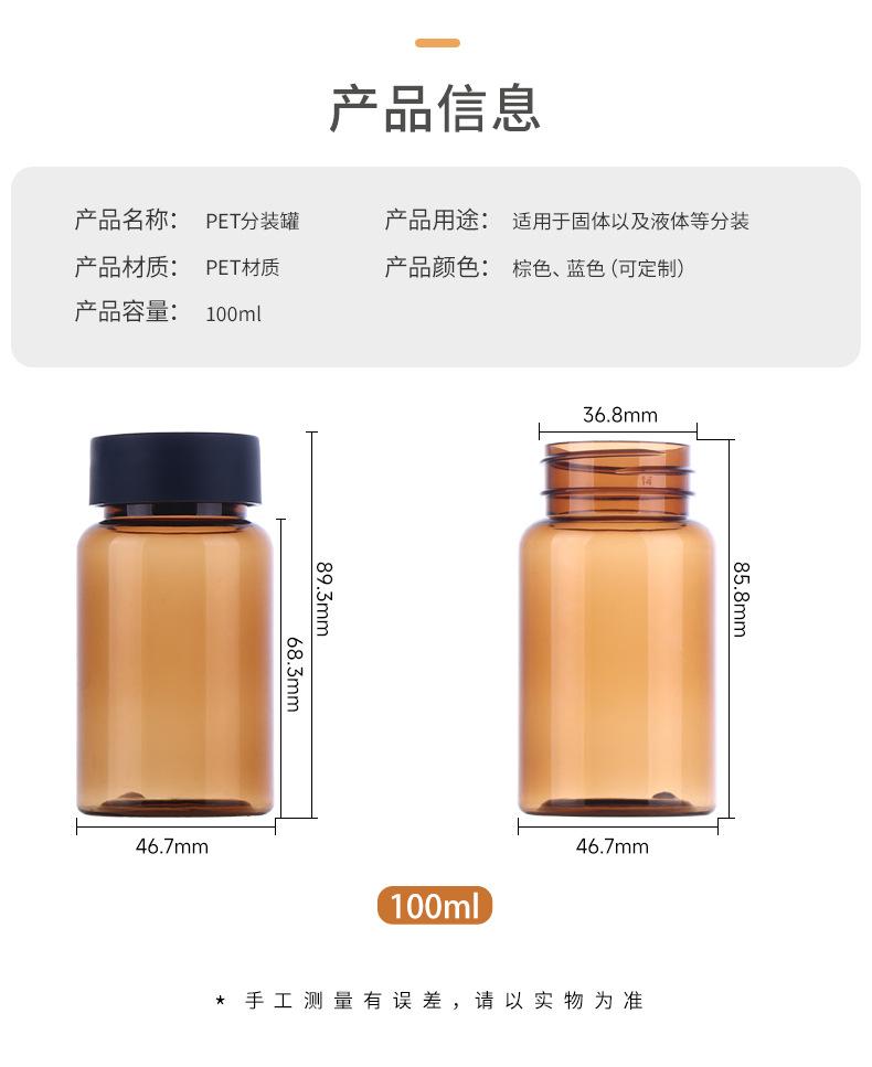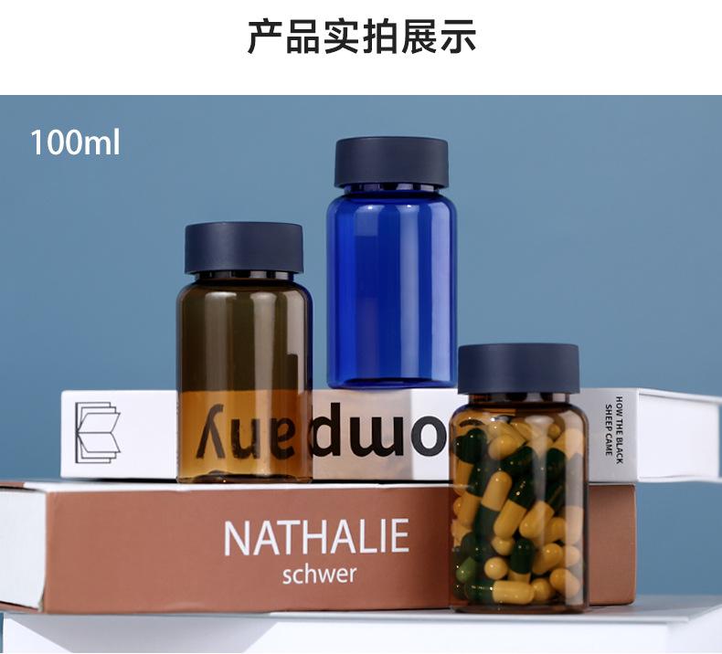 Botella de boca ancha para tabletas de 100 ml, botella de alimento para mascotas, botella pequeña blanca para medicamentos, muestra de cápsula dividida, botella de plástico transparente
