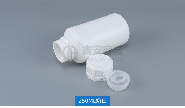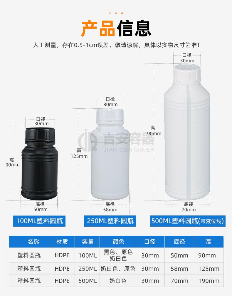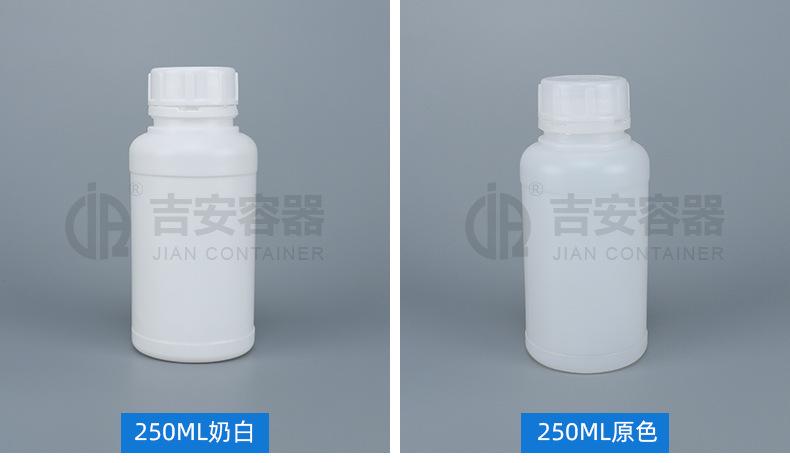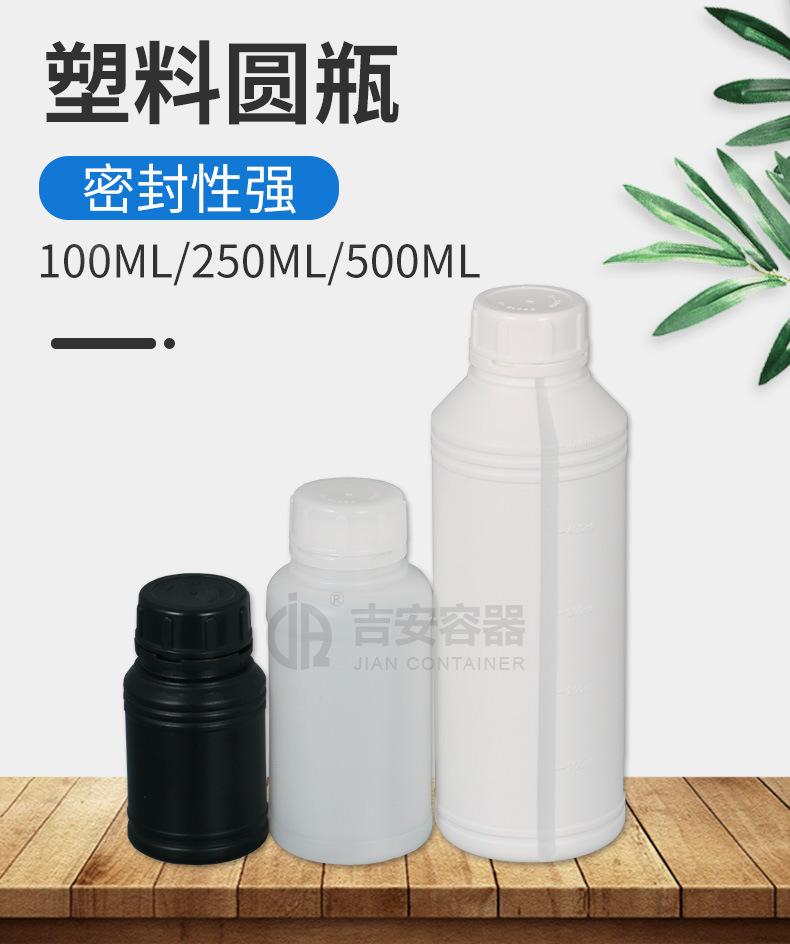 Botella de plástico de boca pequeña de 100/250/500 ml, redonda, para productos químicos, medicamentos, líquidos, nivel de líquido