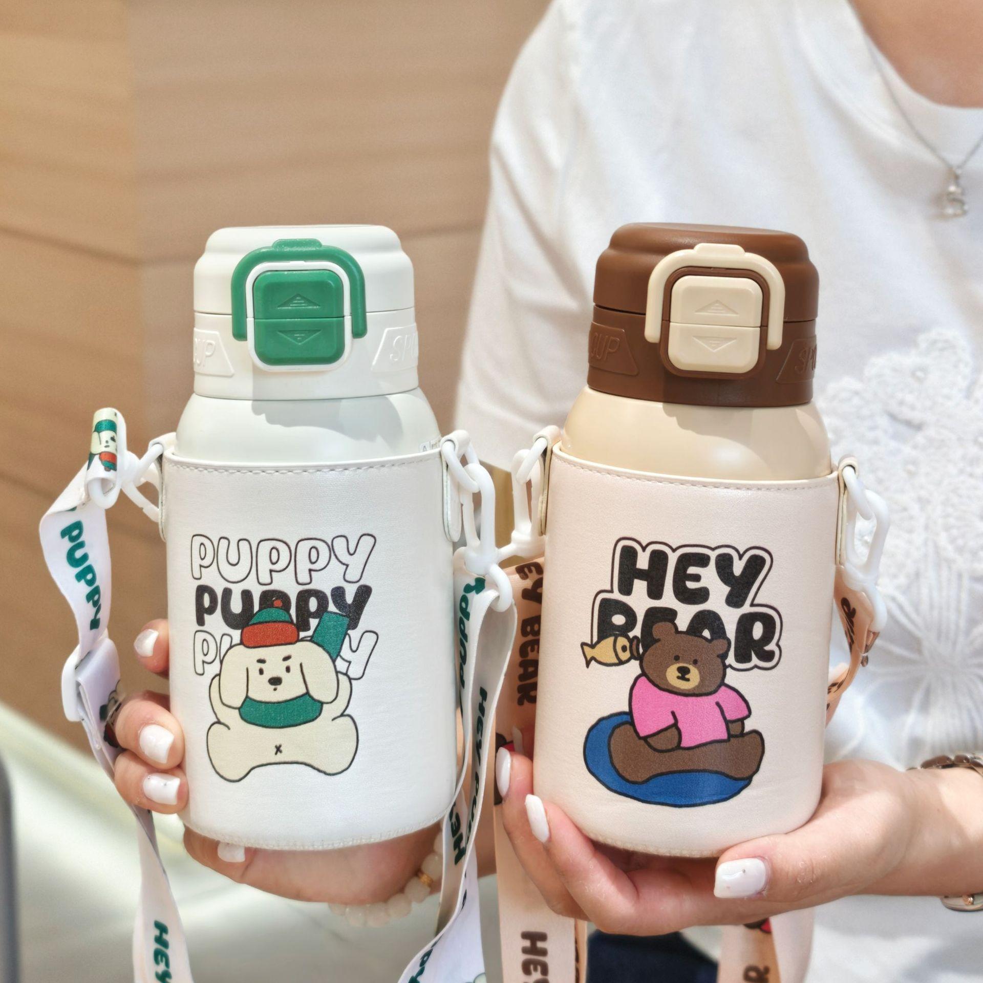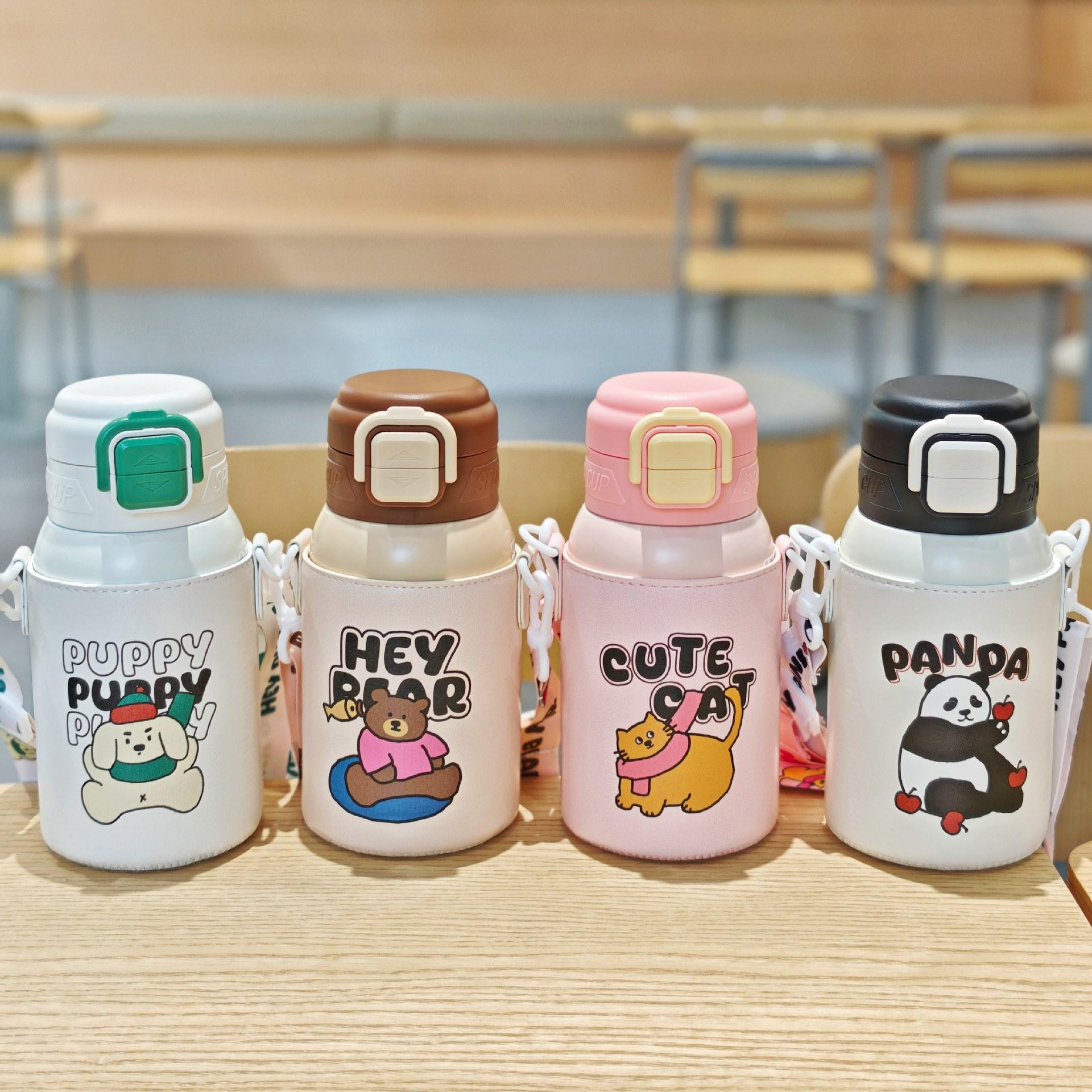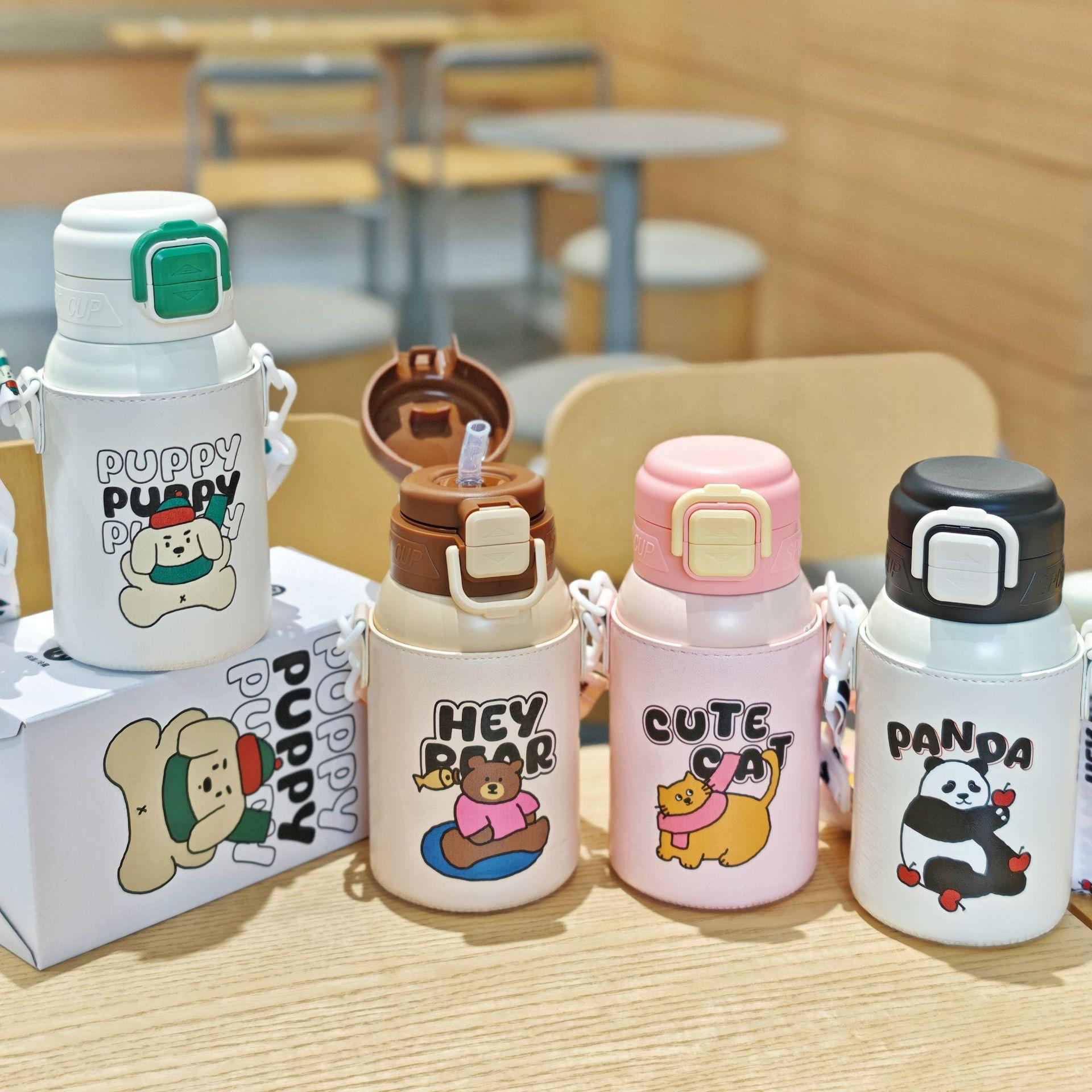 Nuevo Vaso Termo Infantil Lindo con Tapa de Vaso, Vaso de Agua con Pajita Anticaídas, Un Vaso, Doble Bebida Vaso al Vacío, Regalo para Estudiantes