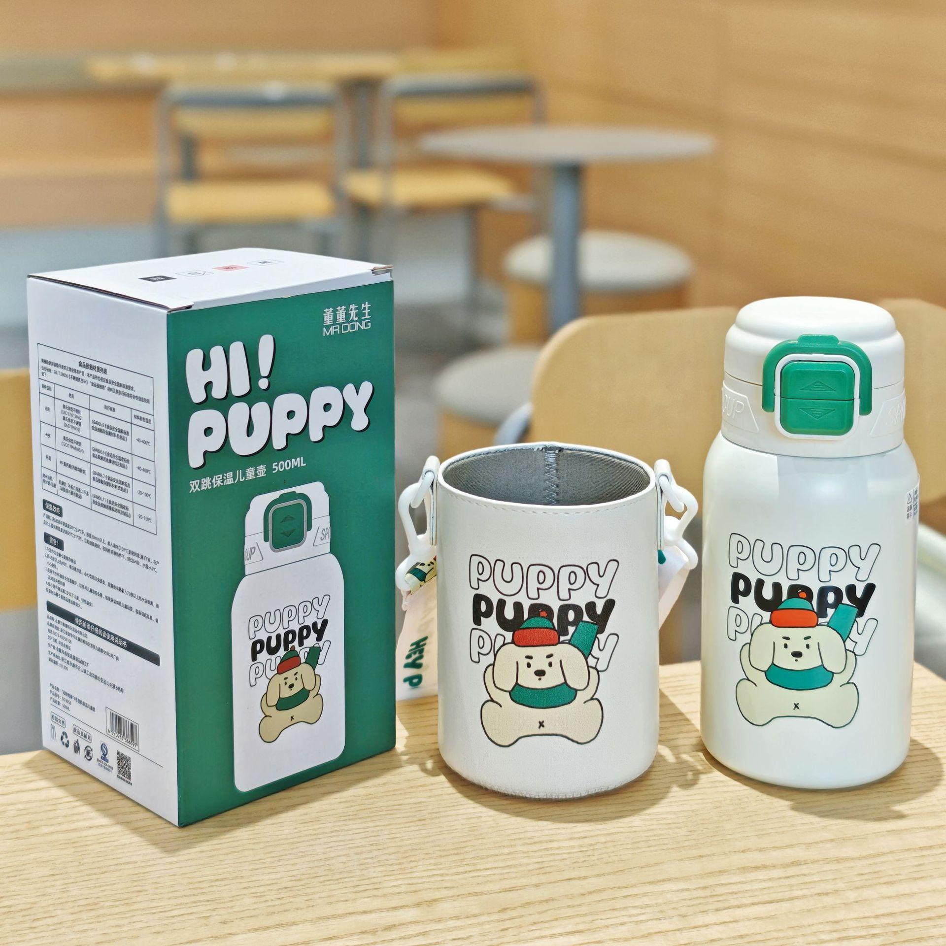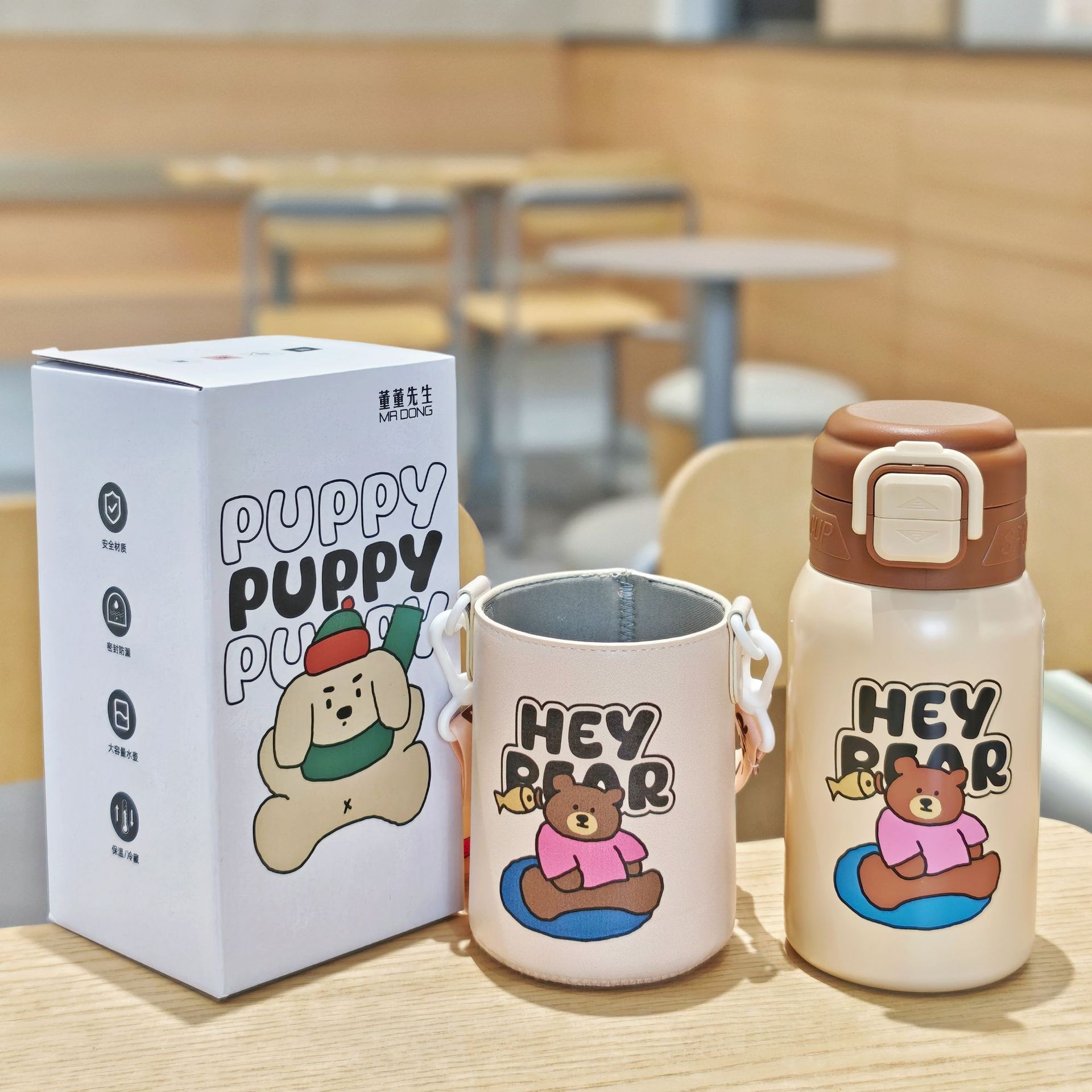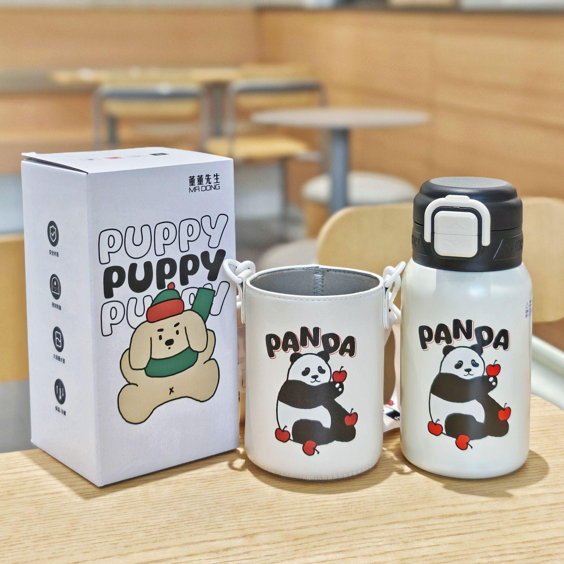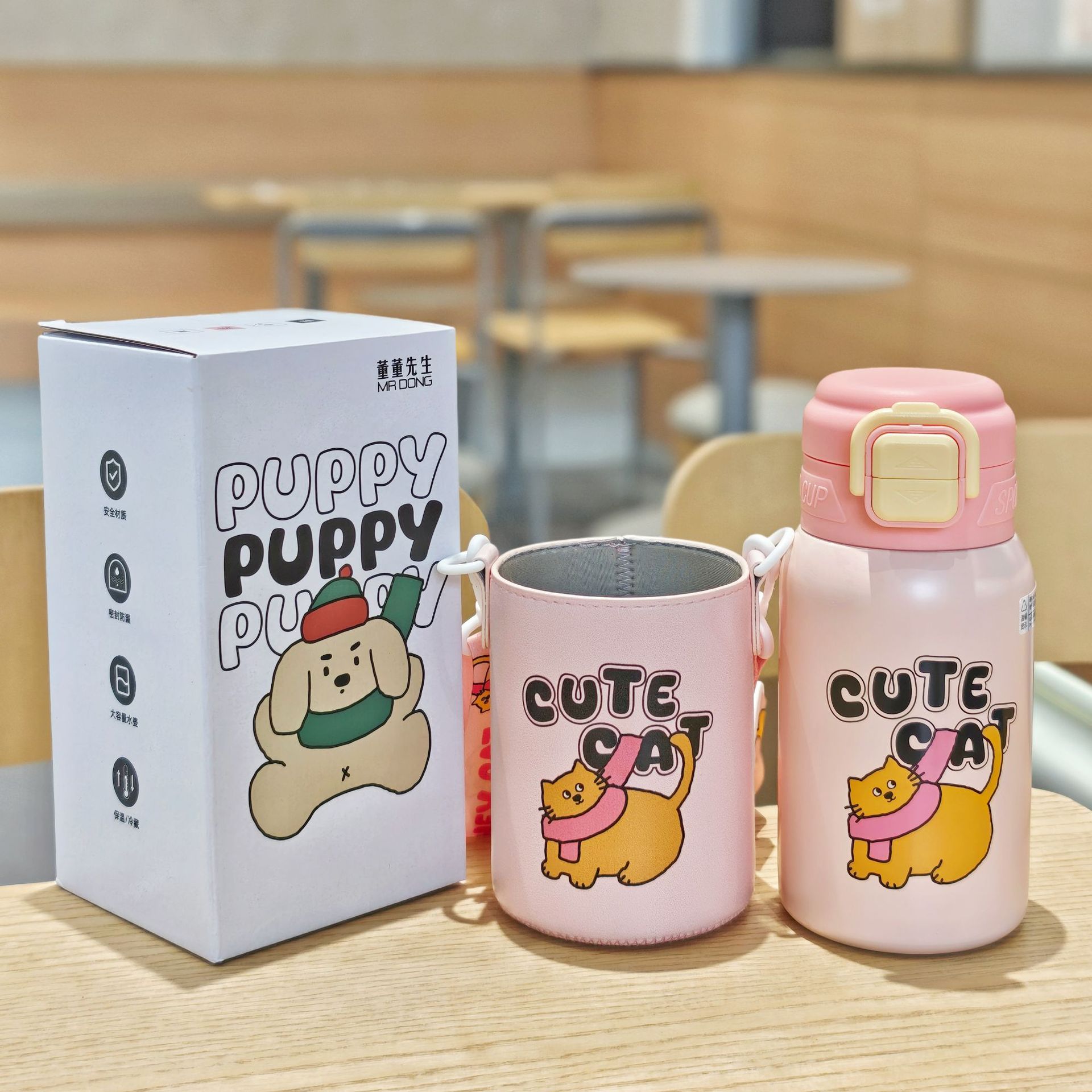 Nuevo Vaso Termo Infantil Lindo con Tapa de Vaso, Vaso de Agua con Pajita Anticaídas, Un Vaso, Doble Bebida Vaso al Vacío, Regalo para Estudiantes
