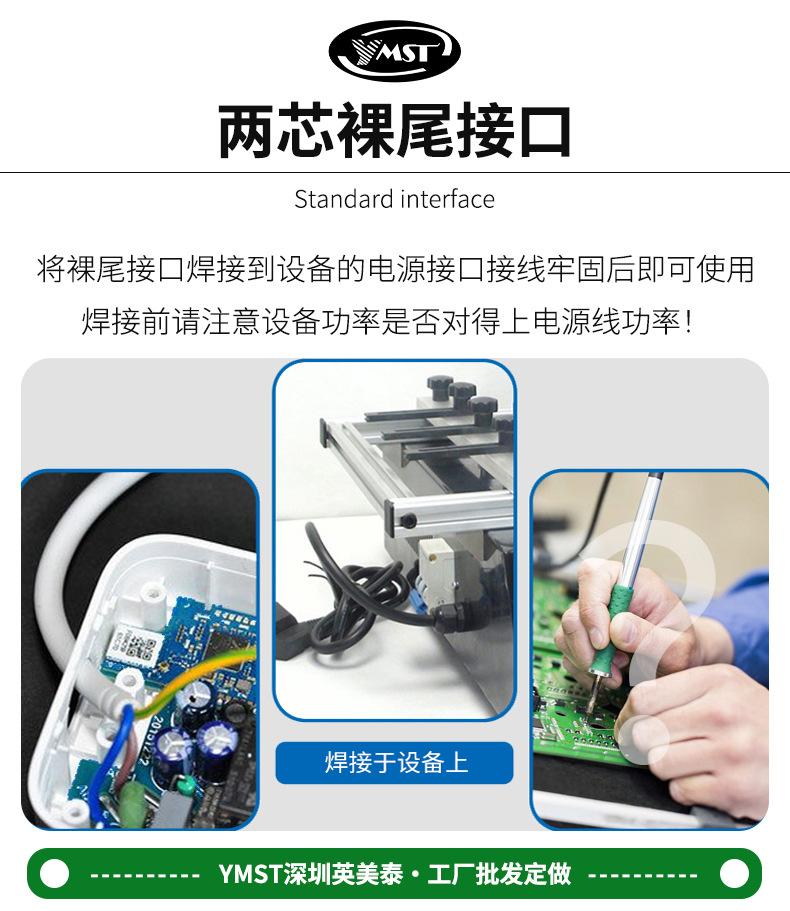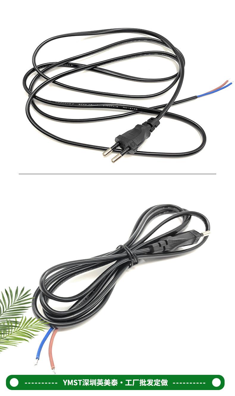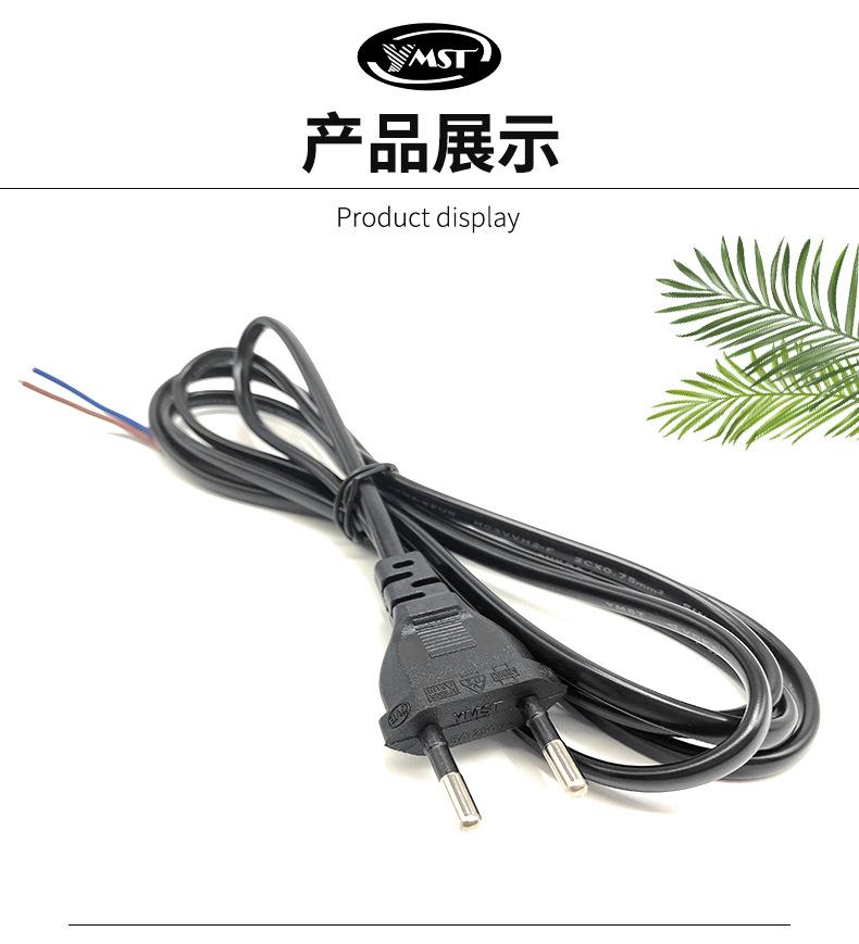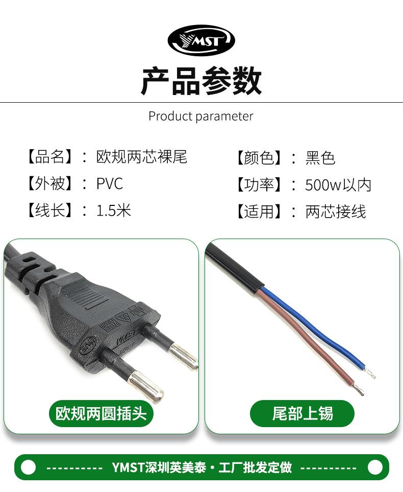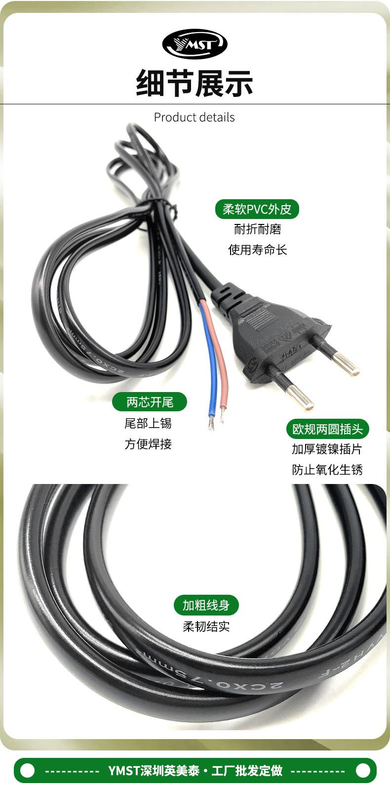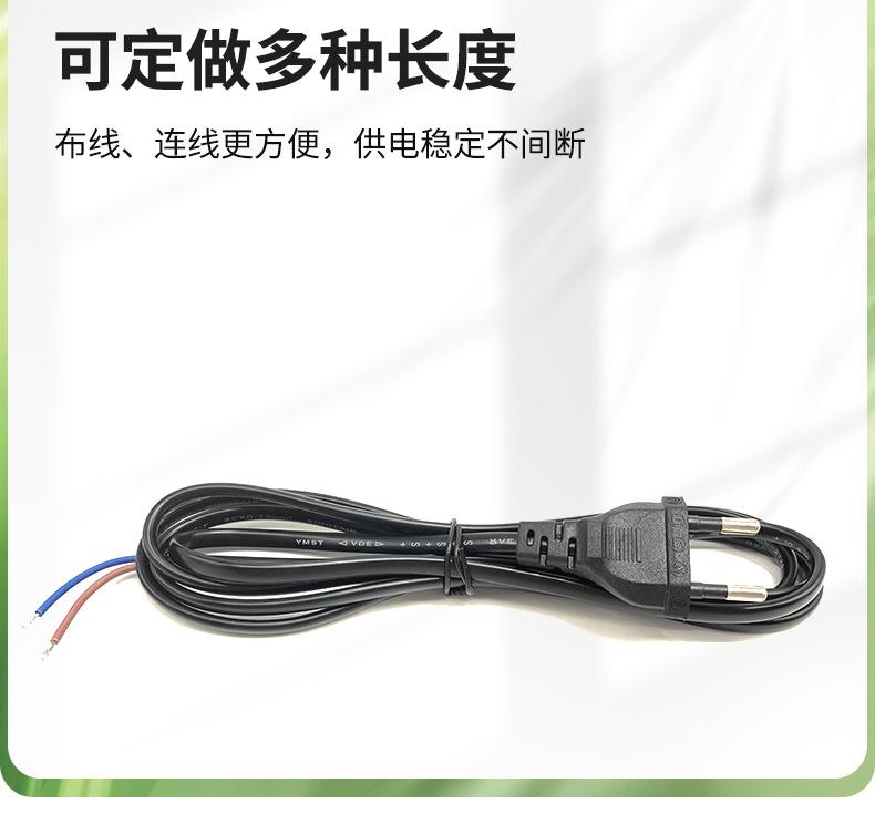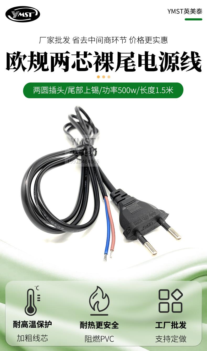 Cable de alimentación con enchufe estañado de cola desnuda estándar europeo, de 1,5 m, de un solo cabezal, estilo alemán, de dos núcleos, 075, para lámpara LED de dos vueltas