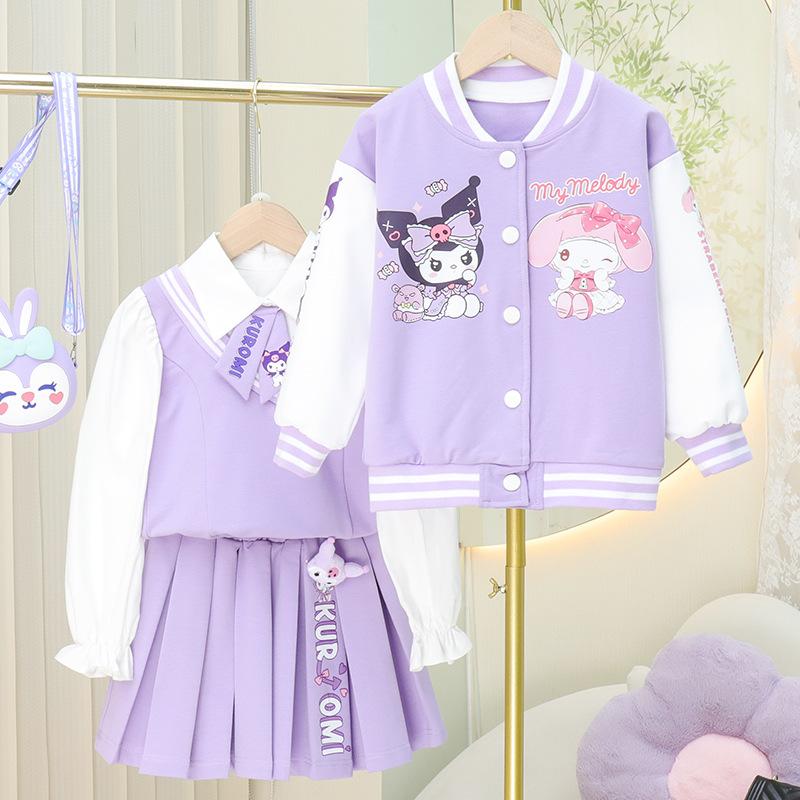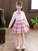 Otoño e invierno 2024 moda para niñas JK abrigo universitario traje de tres piezas abrigo exterior moderno para niños falda plisada