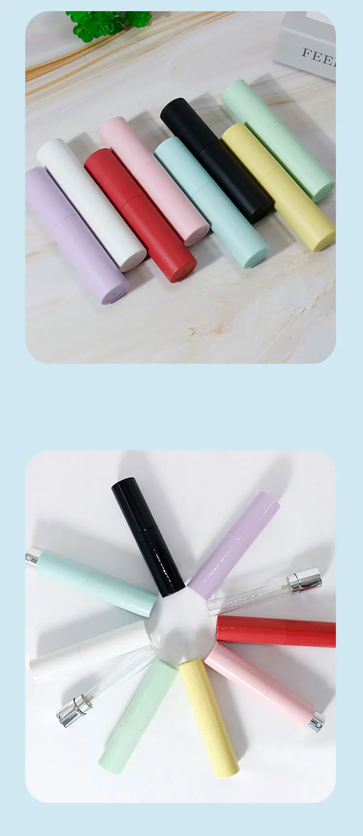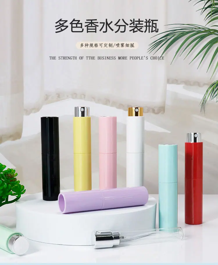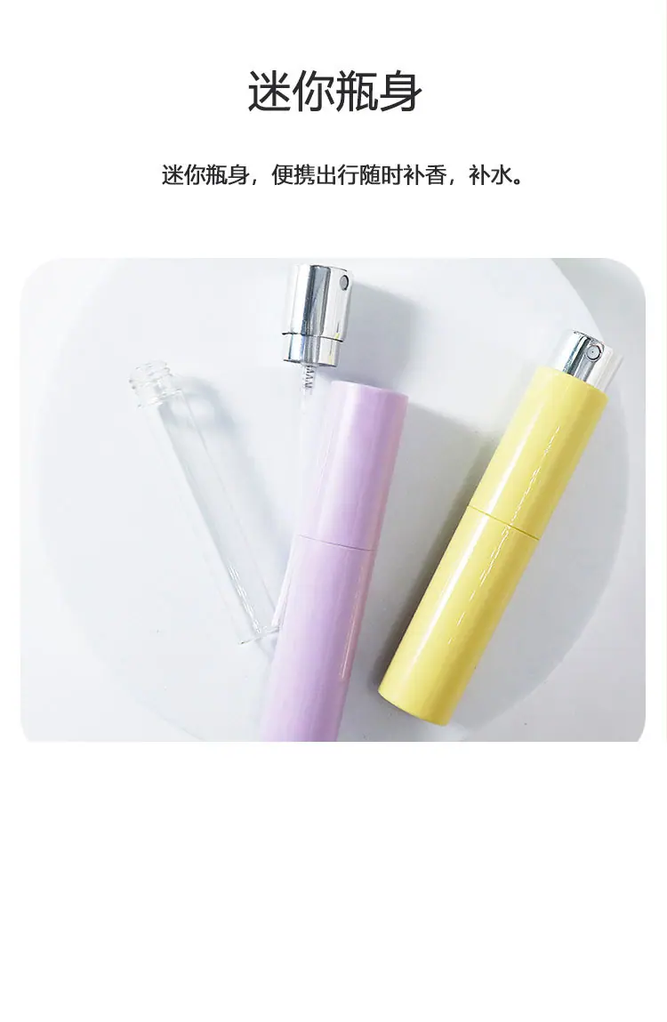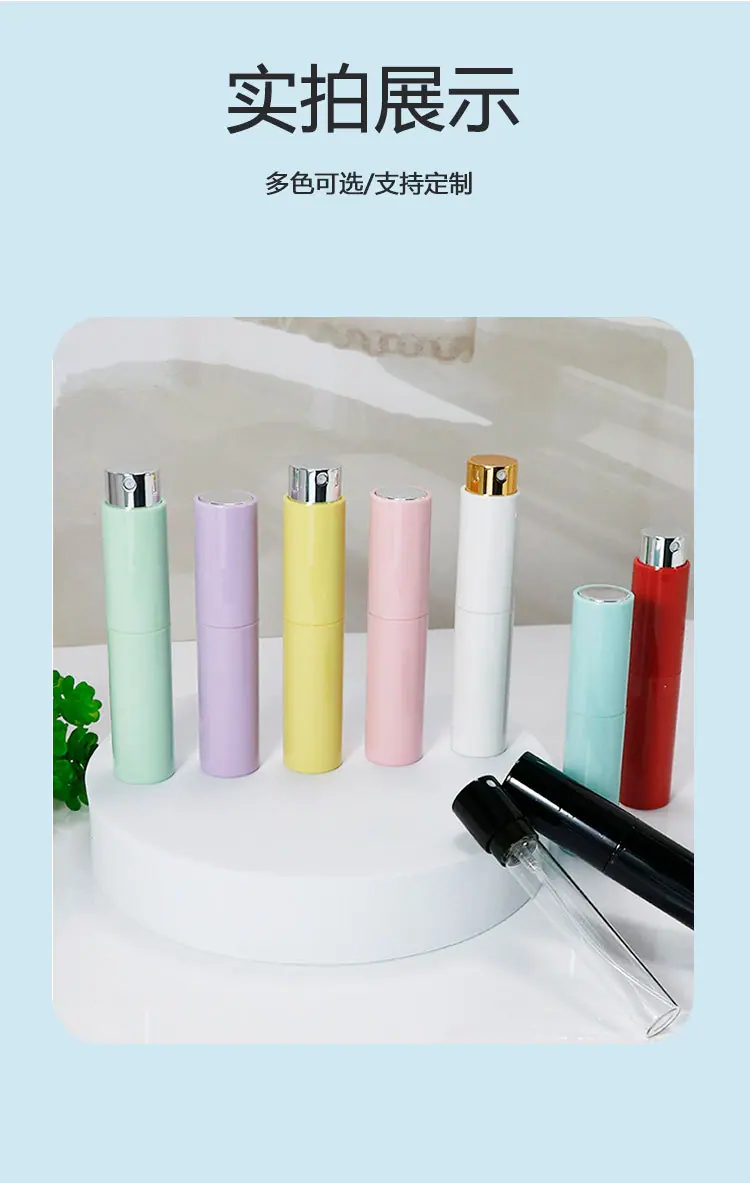 Botella de perfume pequeña giratoria de dos secciones, personalizada, de 10 ml, portátil, con pequeño pulverizador, revestimiento de vidrio, botella de perfume con pulverizador bucal.