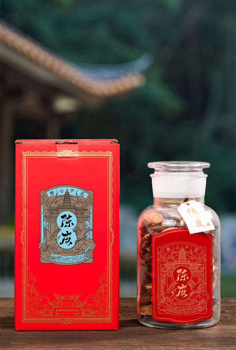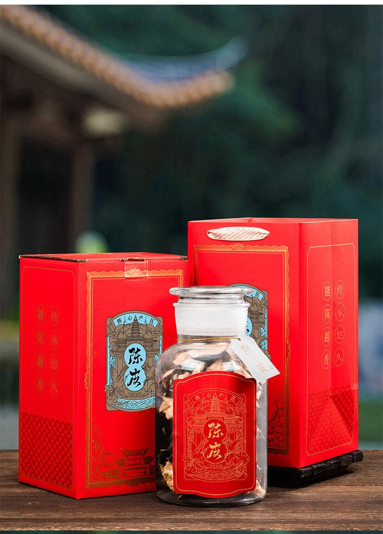 Tangerine peel red glass jar (please take 12 sets for the whole box); half a catty package, Tangerine peel gol...