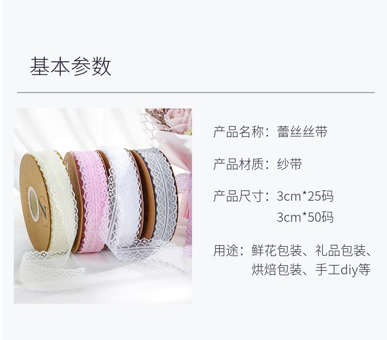 Cinta de encaje de color sólido para ramo de hornear, lazo para atar con flores, lazo para la cabeza, embalaje de flores, cinturón de malla