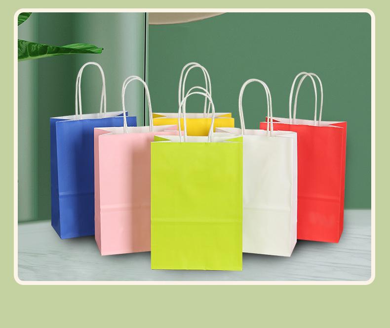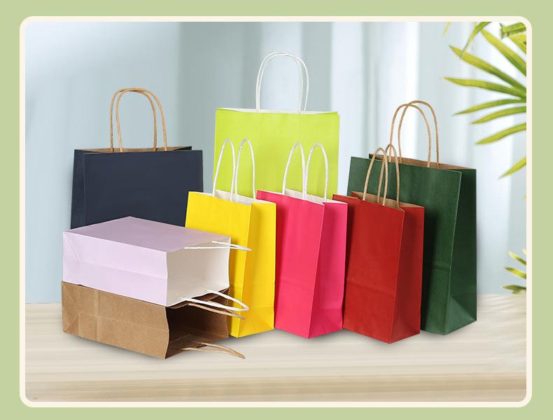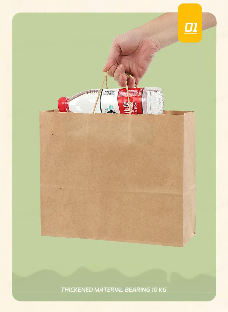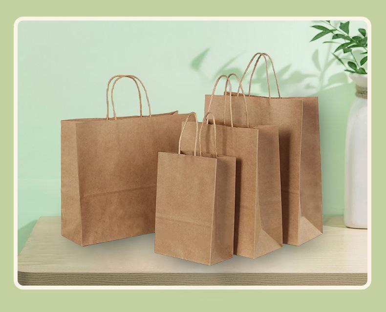 Bolsa de papel kraft en stock de fábrica para llevar, bolsa de embalaje de papel kraft, ropa, bolso de regalo de Navidad, personalización